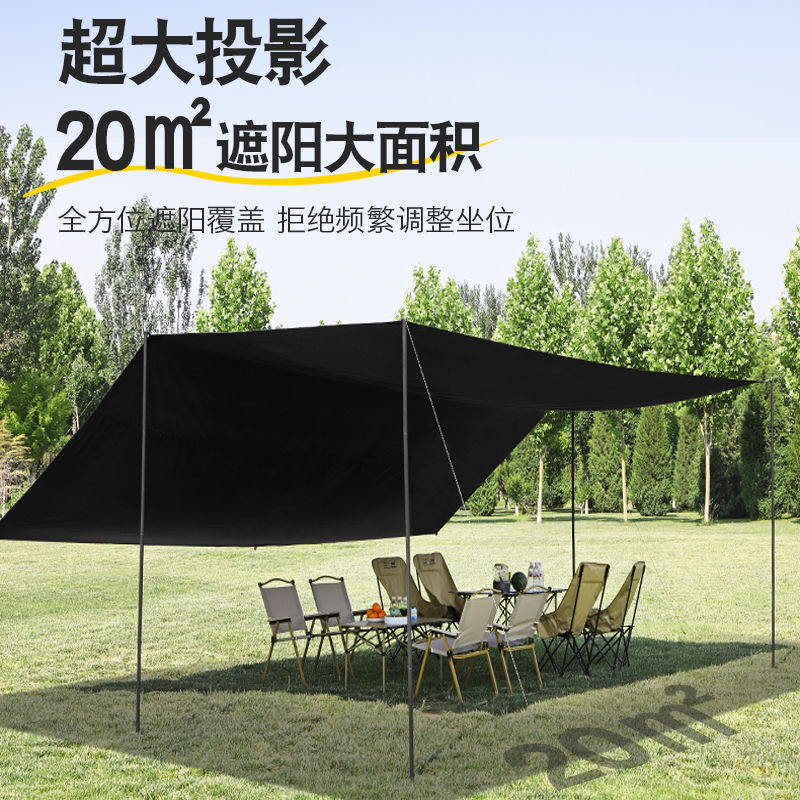 户外大号涂银遮阳棚便携式野外防晒加厚黑胶四杆天幕露营帐篷装备