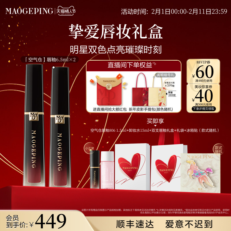 【新年礼物】毛戈平空气仓唇釉黑白羽翼气垫彩妆礼盒套装官方正品