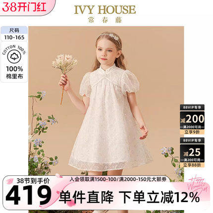 IVY HOUSE常春藤儿童装女童连衣裙夏季 国风古典新中式旗袍亲子装