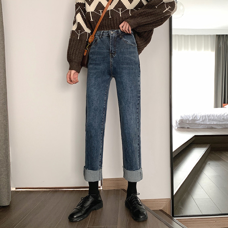 梨形身材卷边牛仔裤女秋冬
