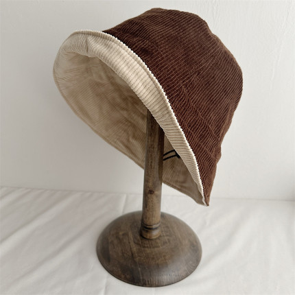 品质双面戴渔夫帽女灯芯绒日系盆帽古着风文艺帽子休闲遮阳帽秋冬