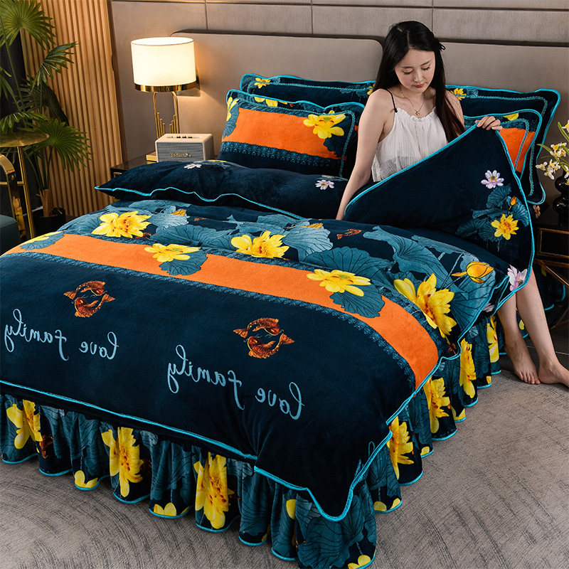 2025新款牛奶绒四件套防静电加厚床裙高档双面绒珊瑚绒法兰绒床品