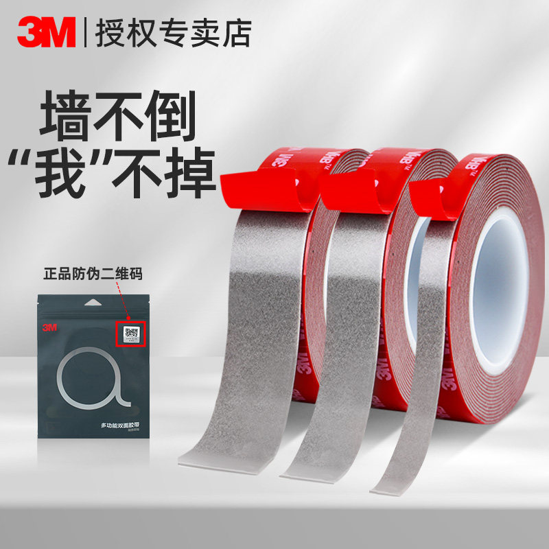 3m双面胶强力高粘度汽车摆件固定胶贴墙免打孔汽车无痕胶带泡绵胶泡沫胶带手机支架粘胶
