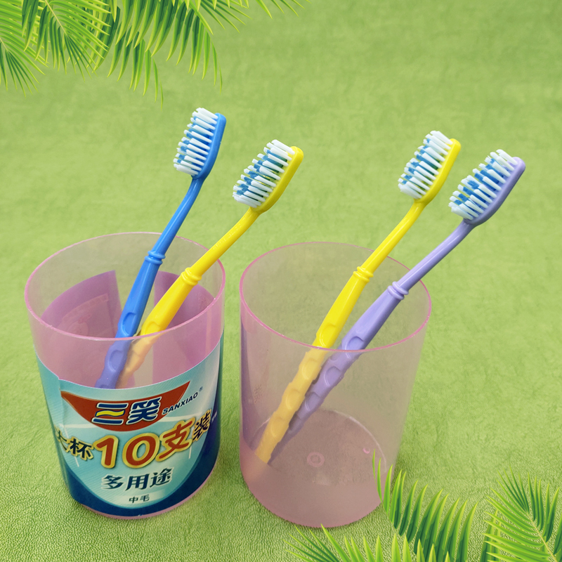 高露洁三笑牙刷正品中硬毛 家庭装 成人家用波浪刷毛特价促销