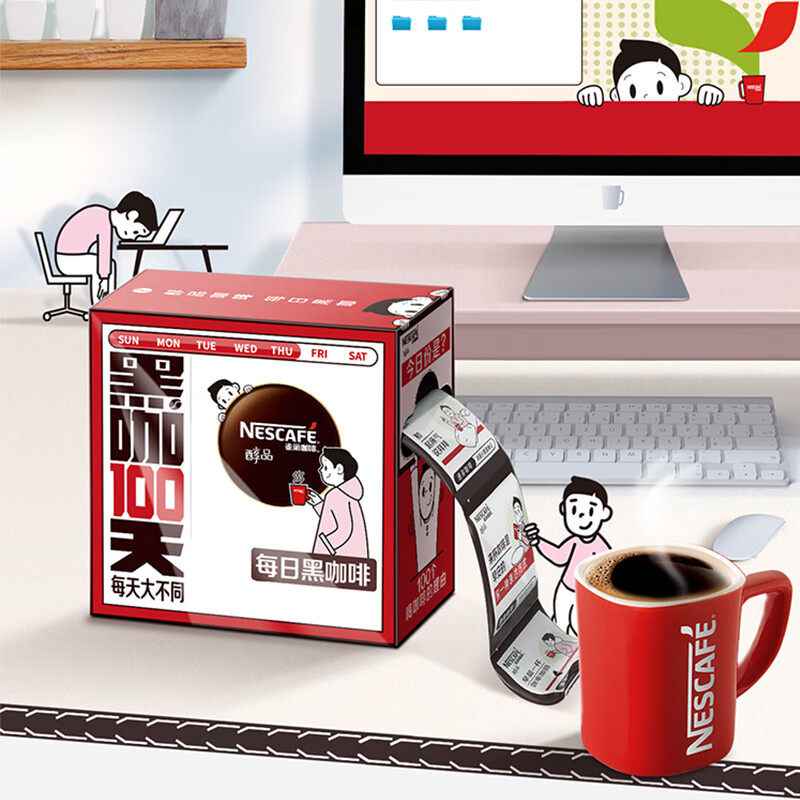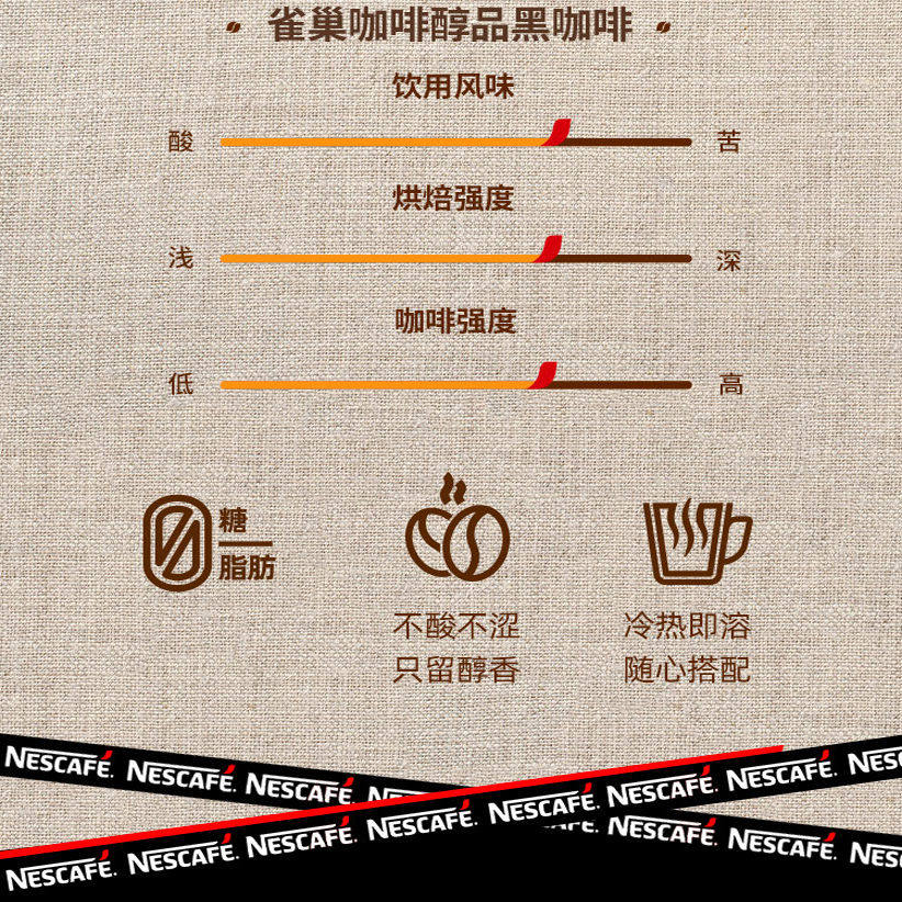 雀巢美式黑咖啡醇品无蔗糖健身速溶纯咖啡粉盒袋装1.8g官方授权店