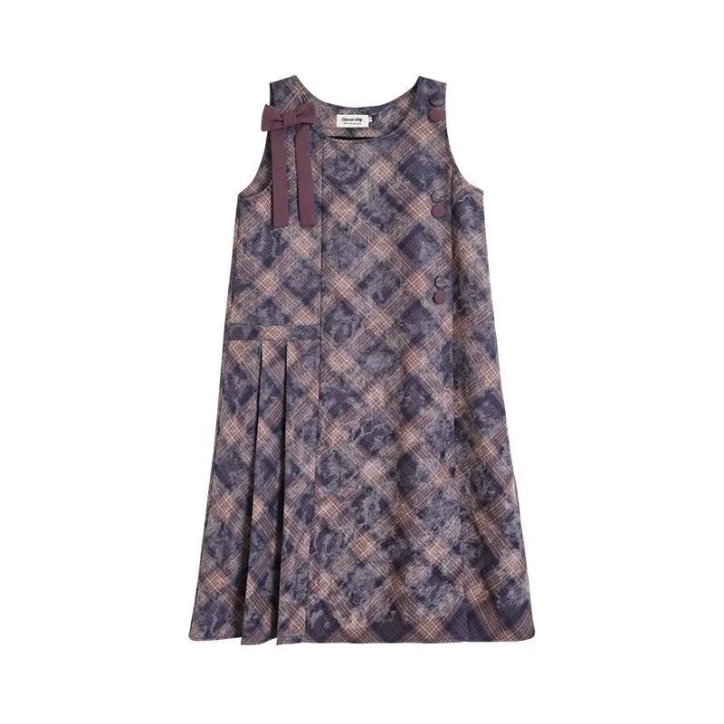 雾霾紫色撞色扎染背带裙女春复古气质温柔百搭宽松连衣裙套装设计