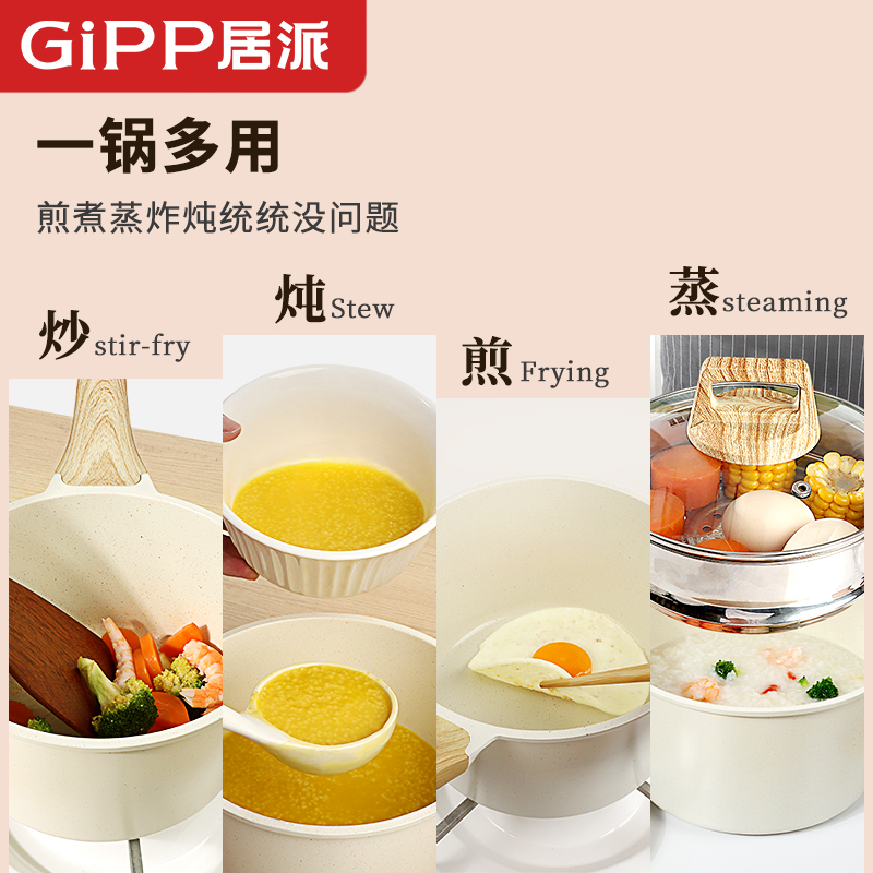 GiPP麦饭石陶瓷奶锅宝宝辅食锅婴儿煎煮一体锅不粘锅家用汤泡面锅