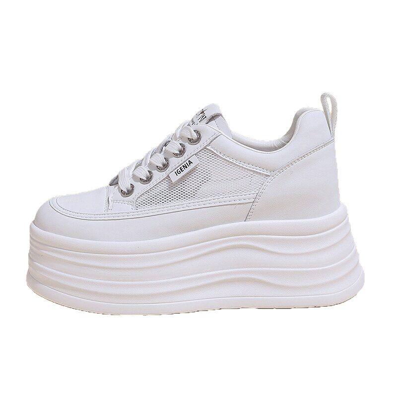 时尚小白鞋女2025春季薄款配裙子板鞋8cm增高厚底内增高休闲板鞋