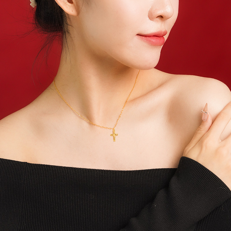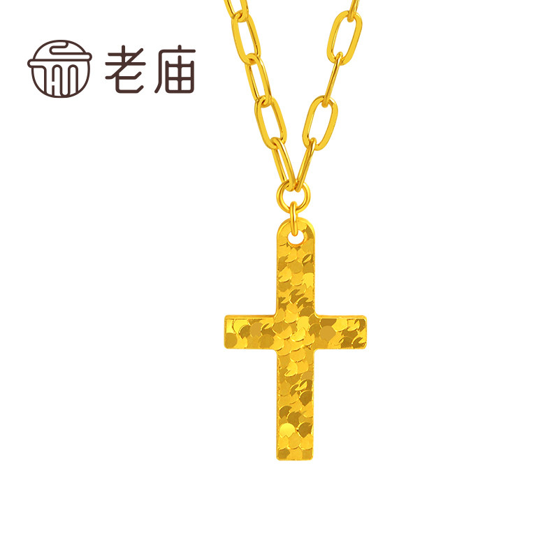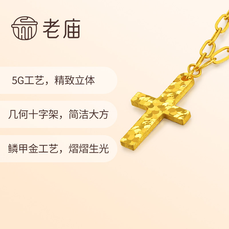 老庙黄金足金十字架项链鳞甲金金光闪闪5G时尚小众轻奢悦己甄品