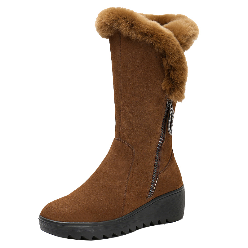 雪地靴女2025新款冬季坡跟棉靴女厚底真皮靴子加绒保暖防滑中筒靴