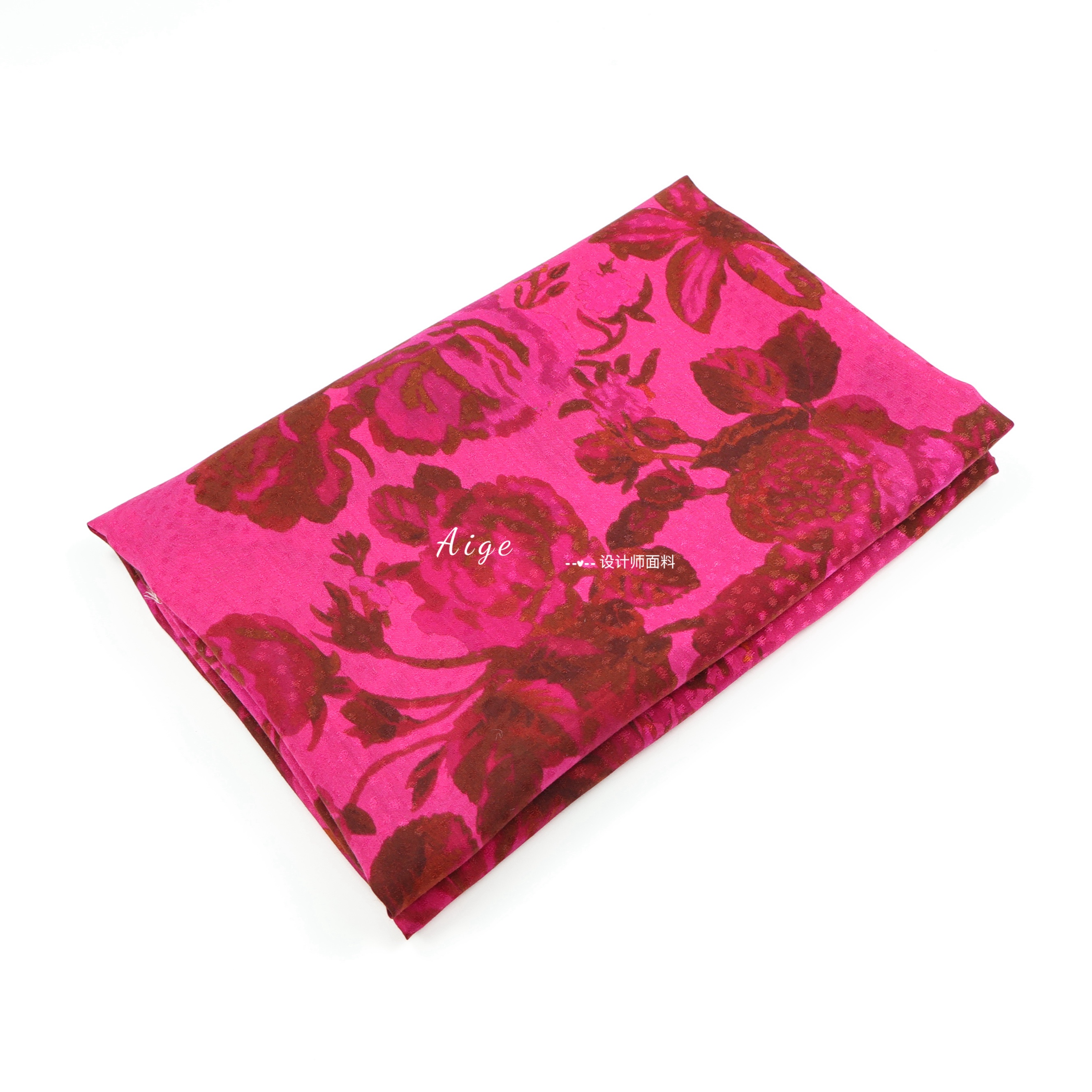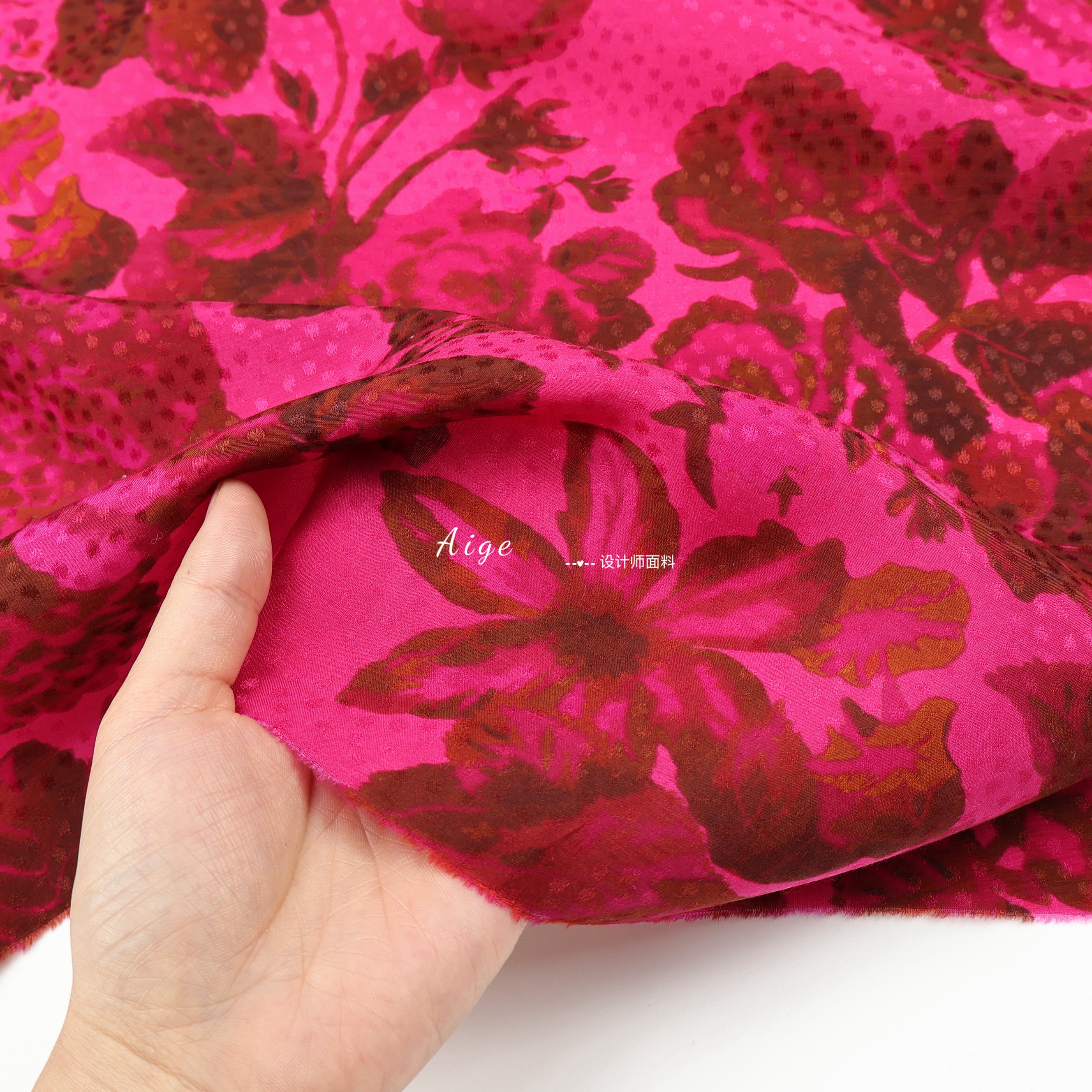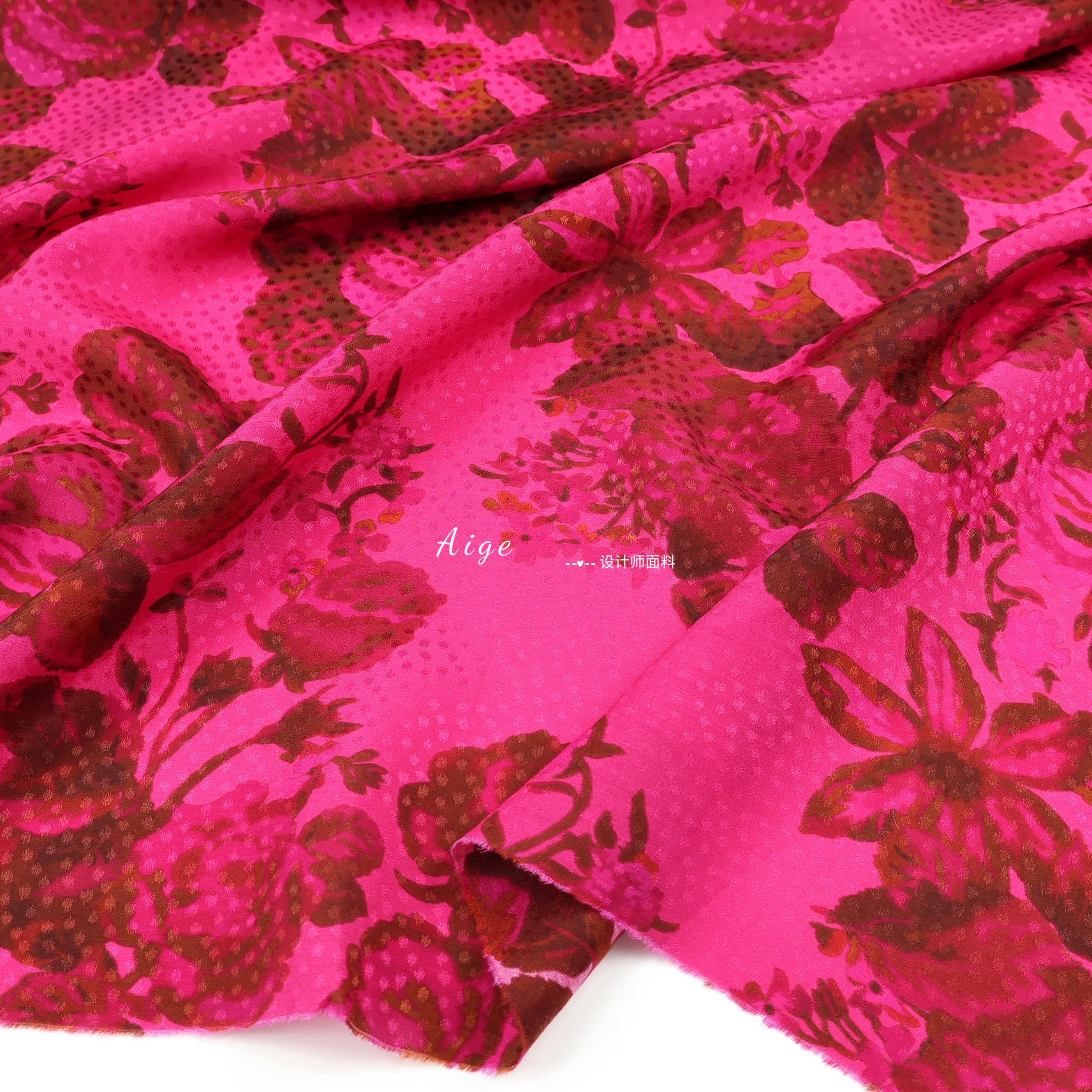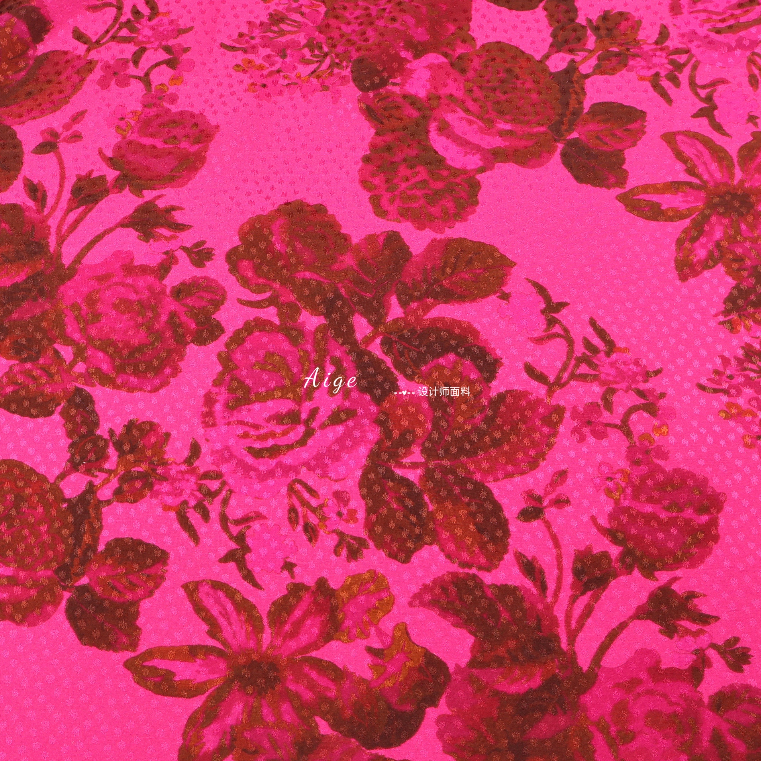 柔软垂坠不透 进口波点肌理玫粉色大花印花真丝面料衬衫长裙布料