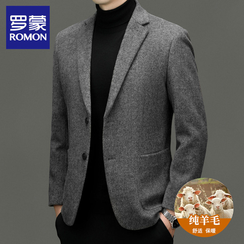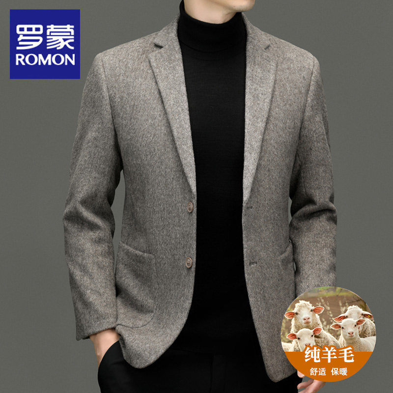 罗蒙100%纯羊毛西装外套男2025新款商务休闲高级纯色羊毛呢子西服