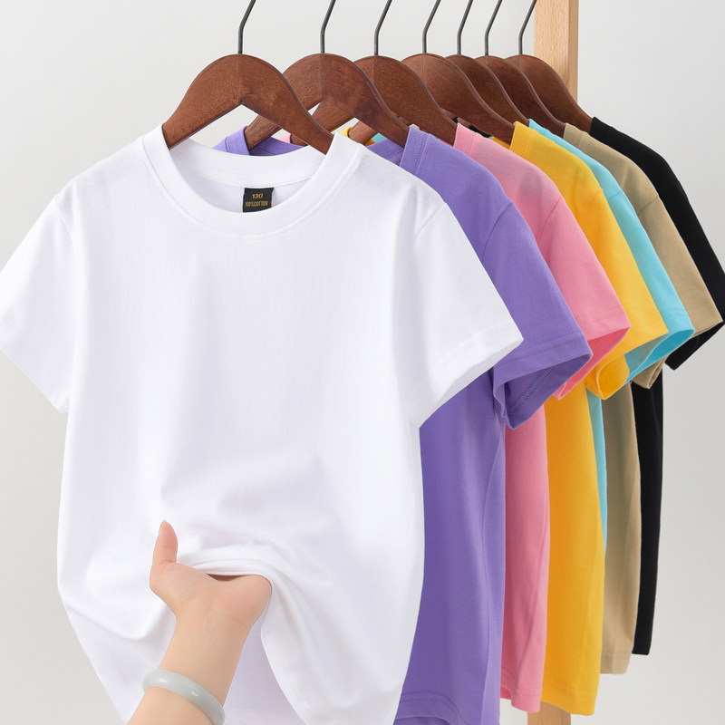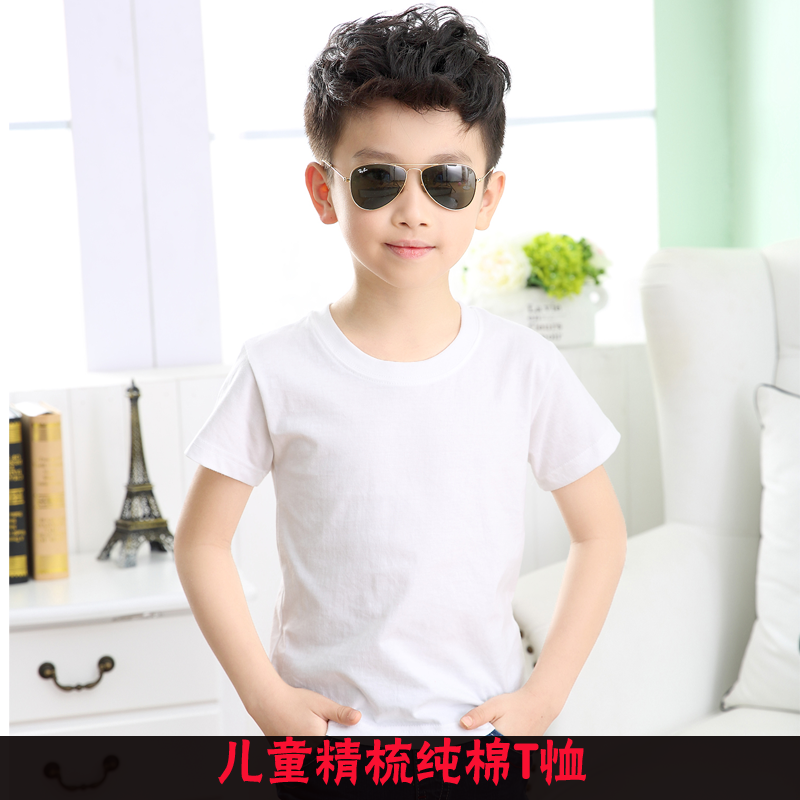 纯白色圆领男女童纯棉短袖文化衫儿童T恤定制广告衫幼儿园手绘画
