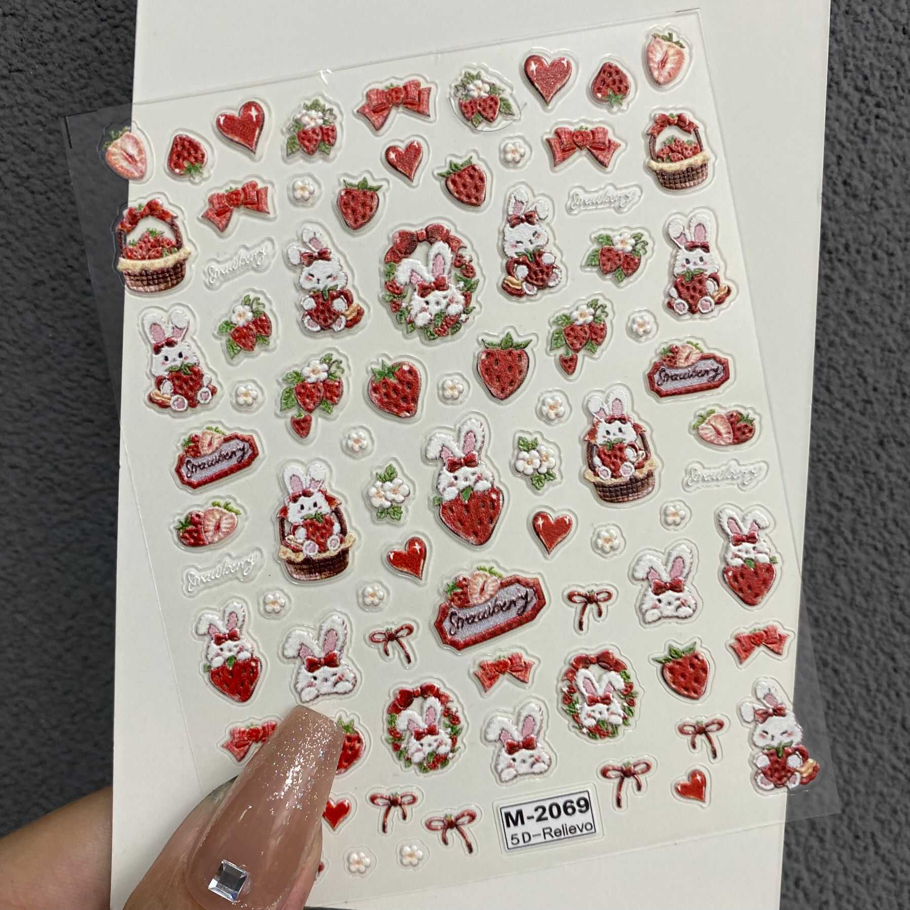 草莓兔子美甲贴纸浮雕甜美可爱小兔子手账diy贴纸花篮指甲贴花