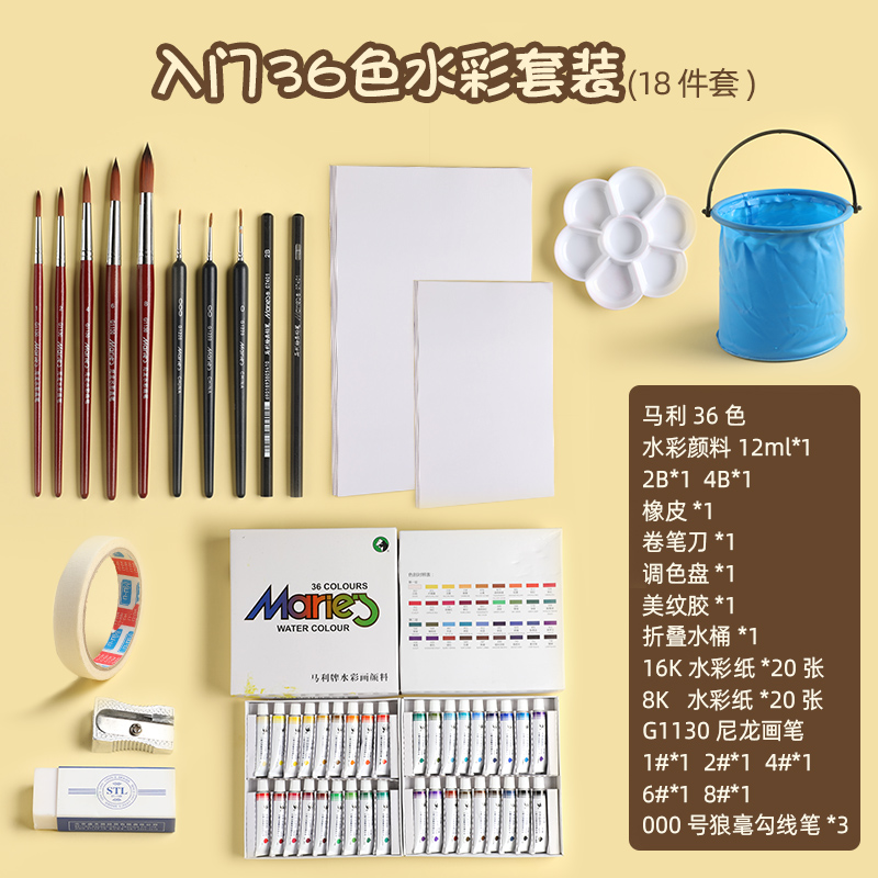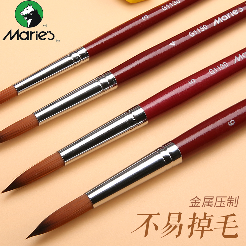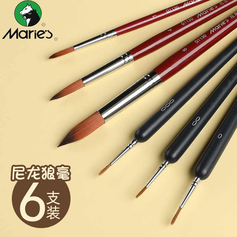 马利牌水彩画笔套装水彩笔水粉笔7支套装尼龙毛尖头圆头丙烯颜料勾线笔水彩毛笔初学者手绘美术学生专用画笔