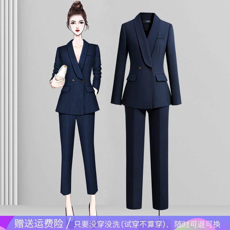青果领职业西装套装女春秋气质修身职场白领工作服通勤西服工装