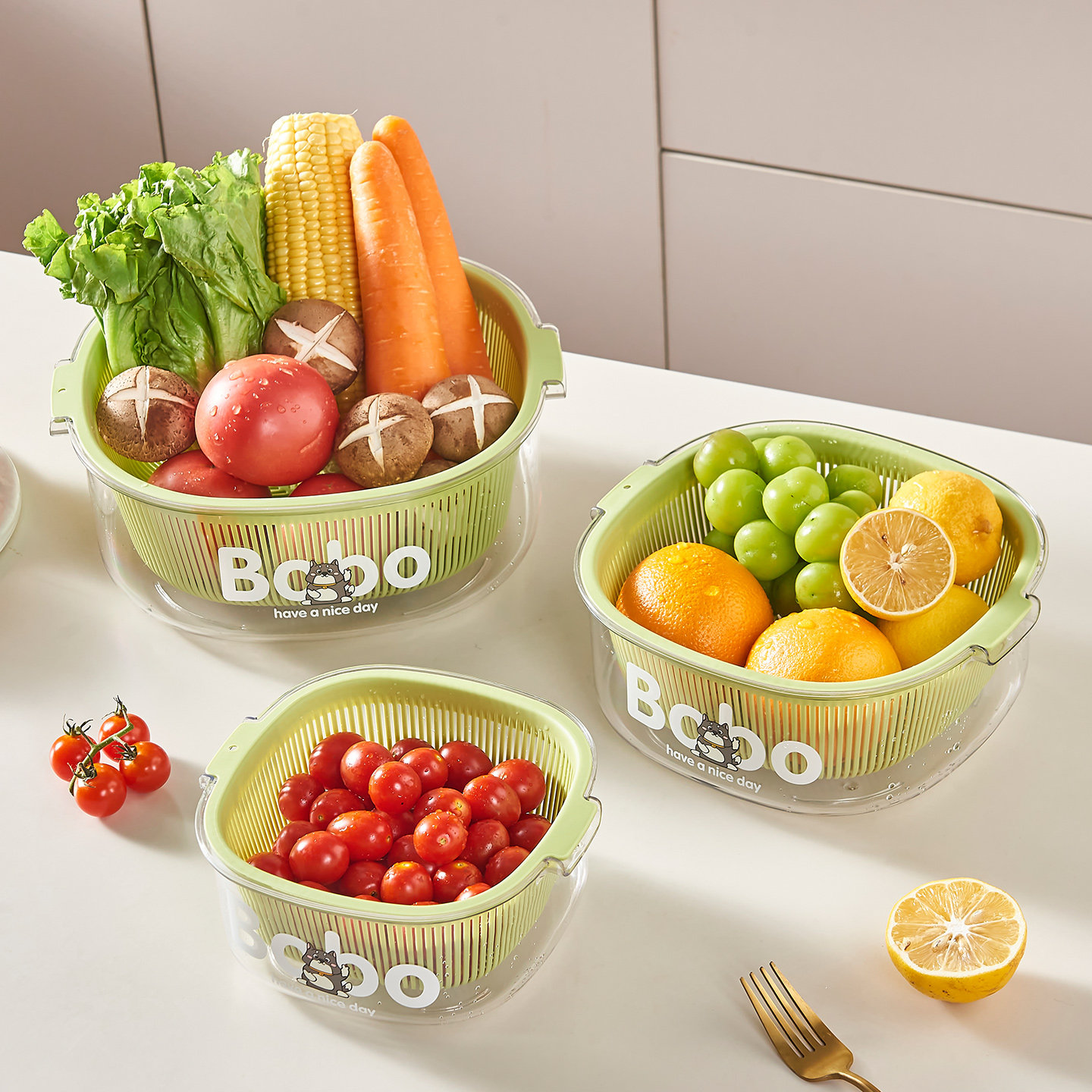 抗菌沥水篮六件套洗菜盆