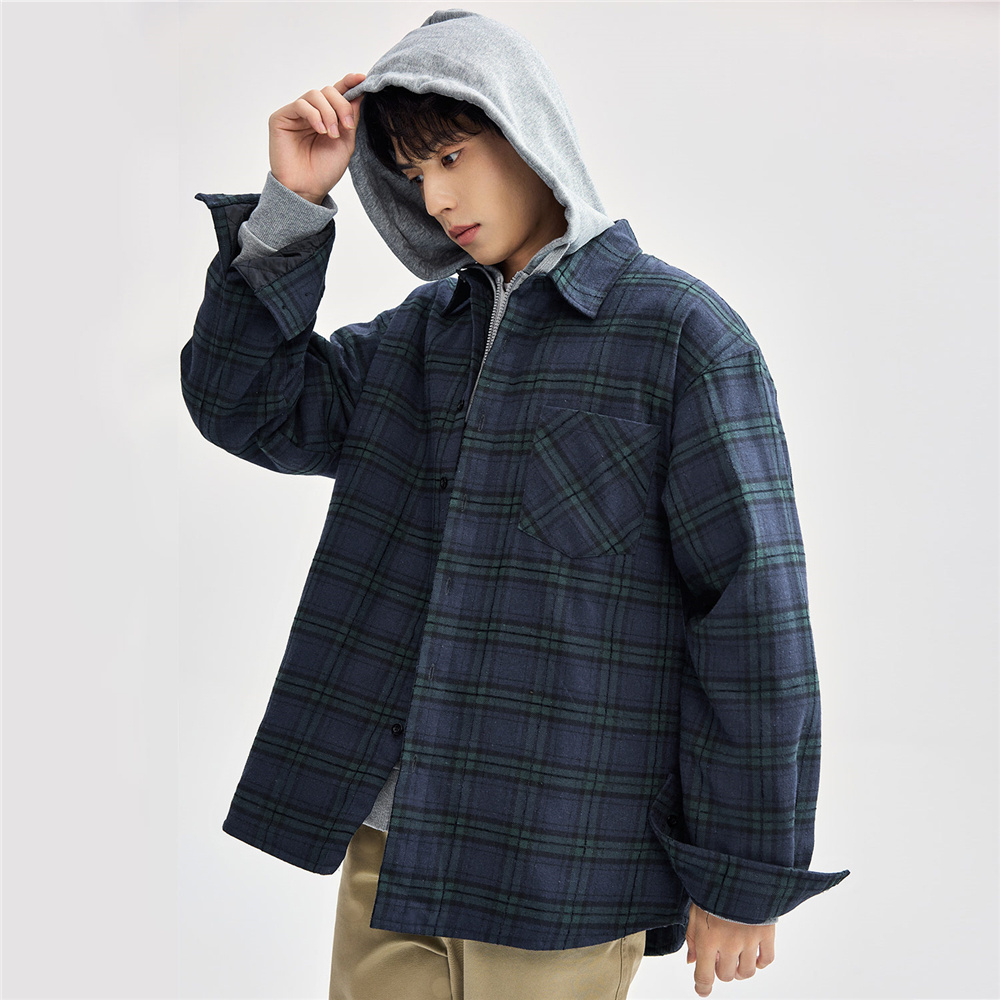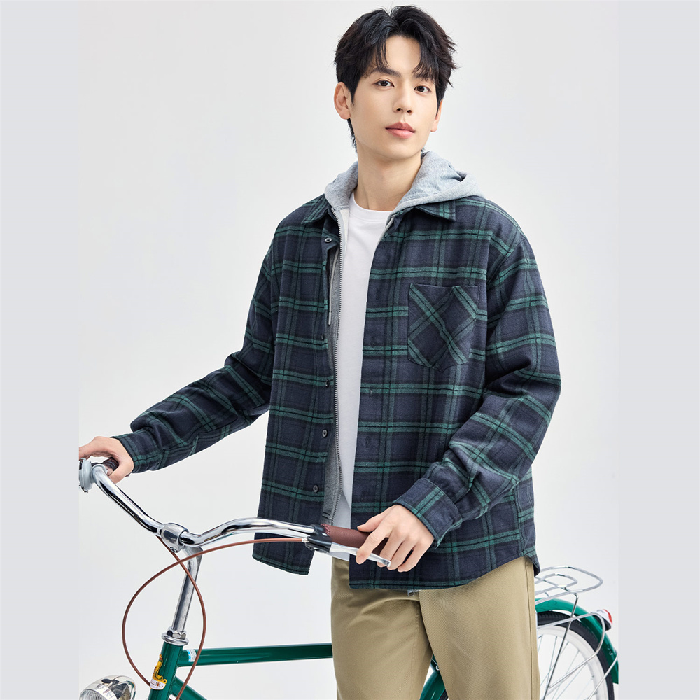 佐丹奴衬衫男装格纹夹棉法兰绒梭织长袖衬衫外套 18044623