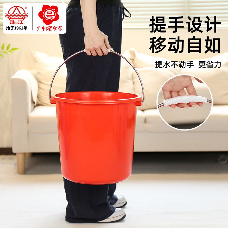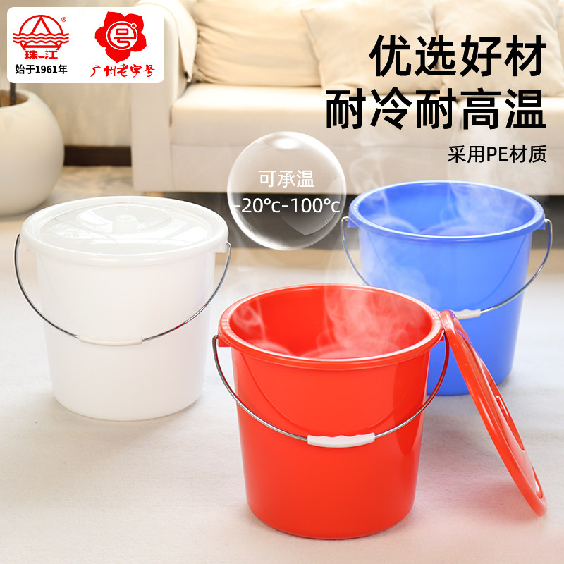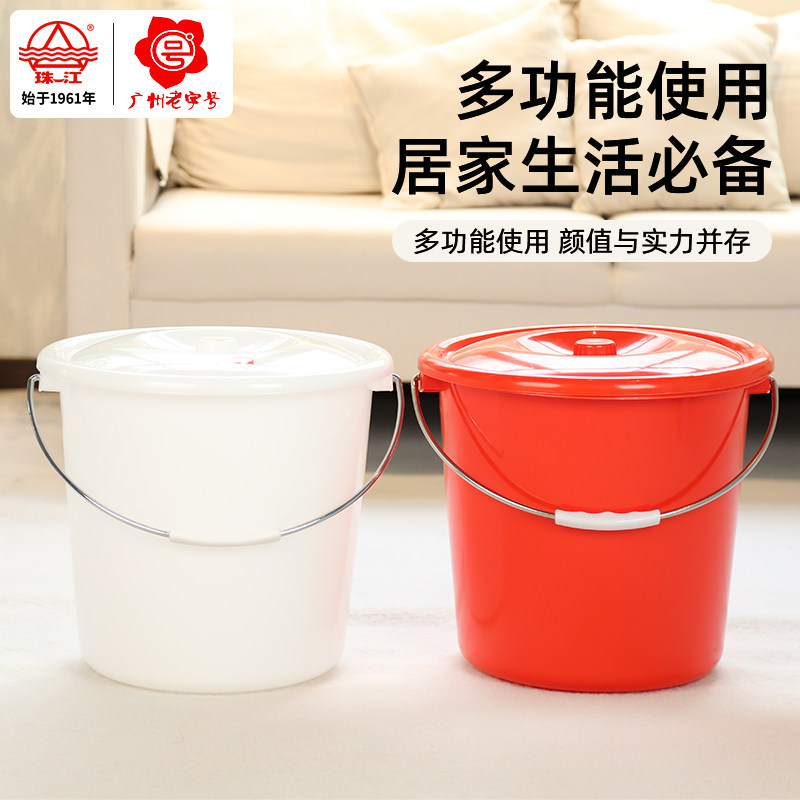 珠江牌塑料桶红色带盖家用学生宿舍用洗衣服洗澡加厚蓄水桶手提桶