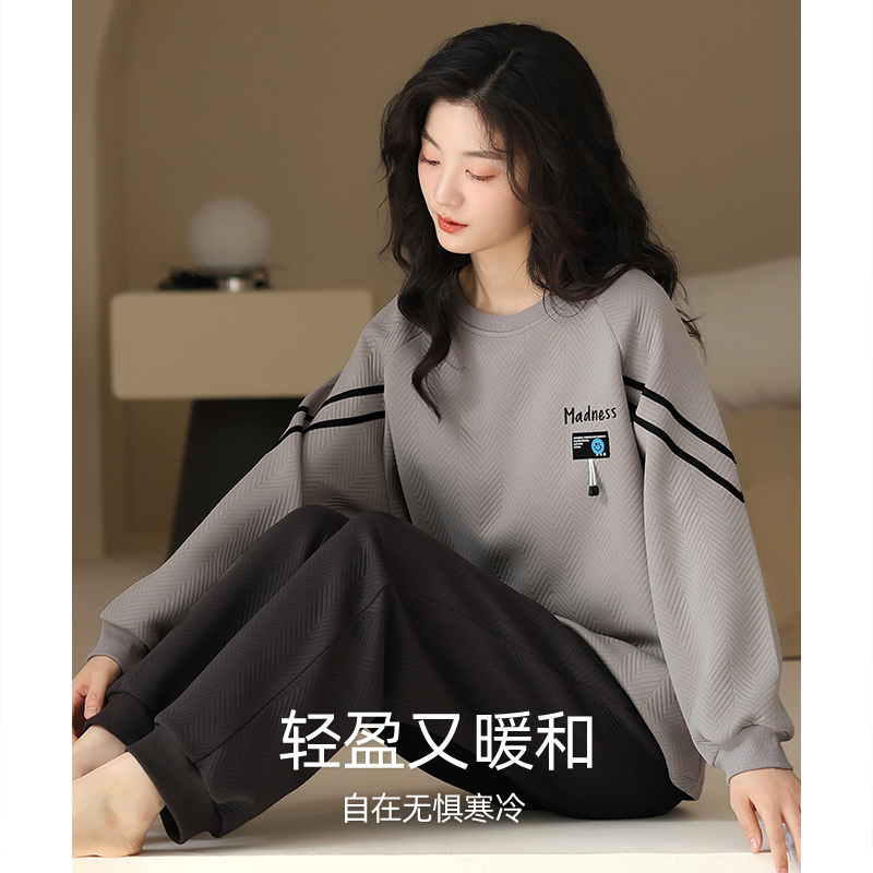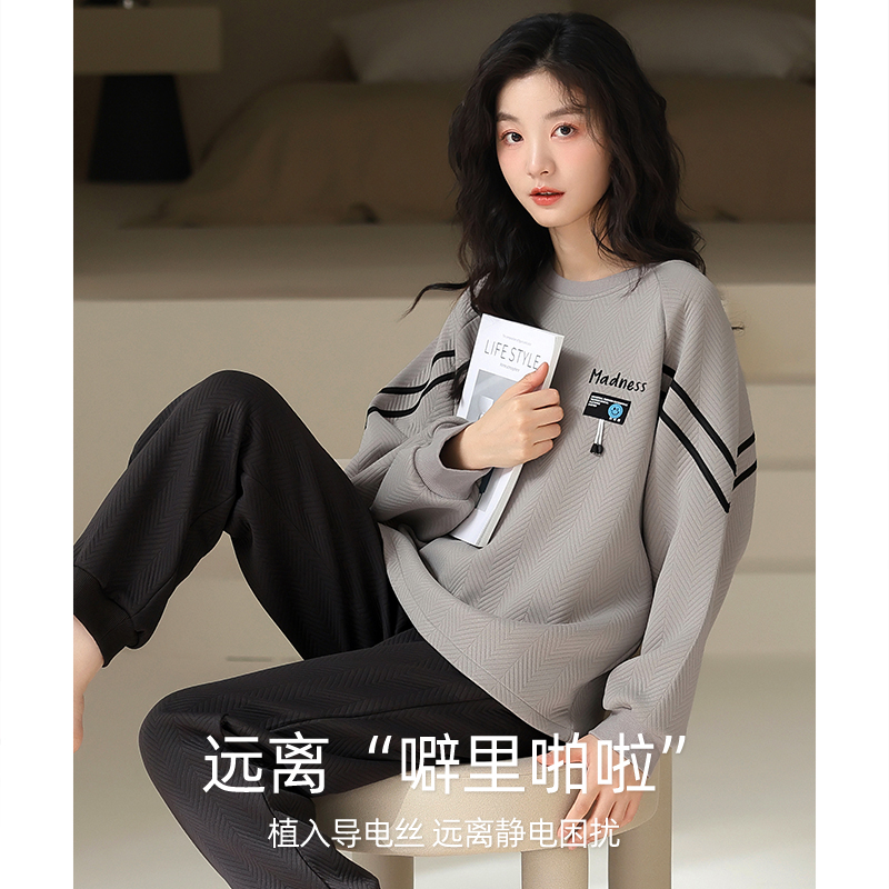 睡衣女士秋冬款纯棉夹层家居服