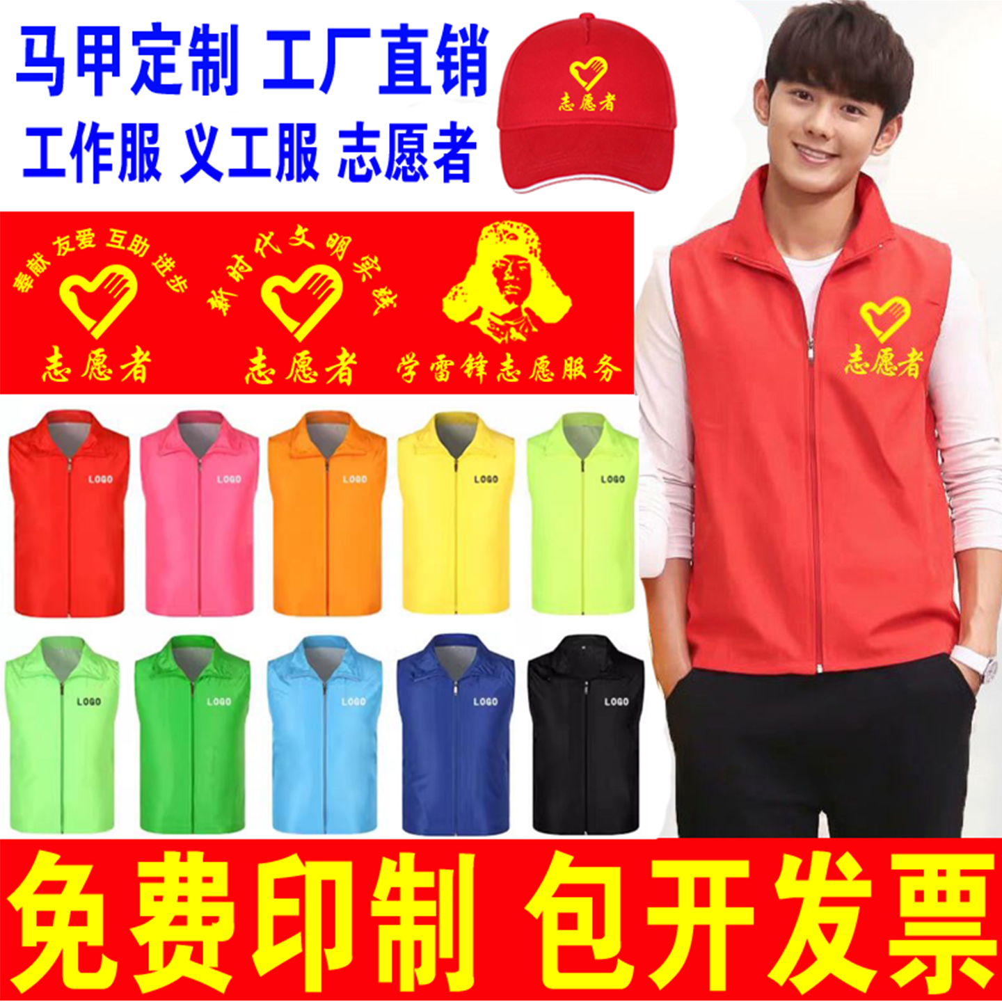 志愿者马甲定制红色党员义工工作服印logo字广告活动儿童宣传背心