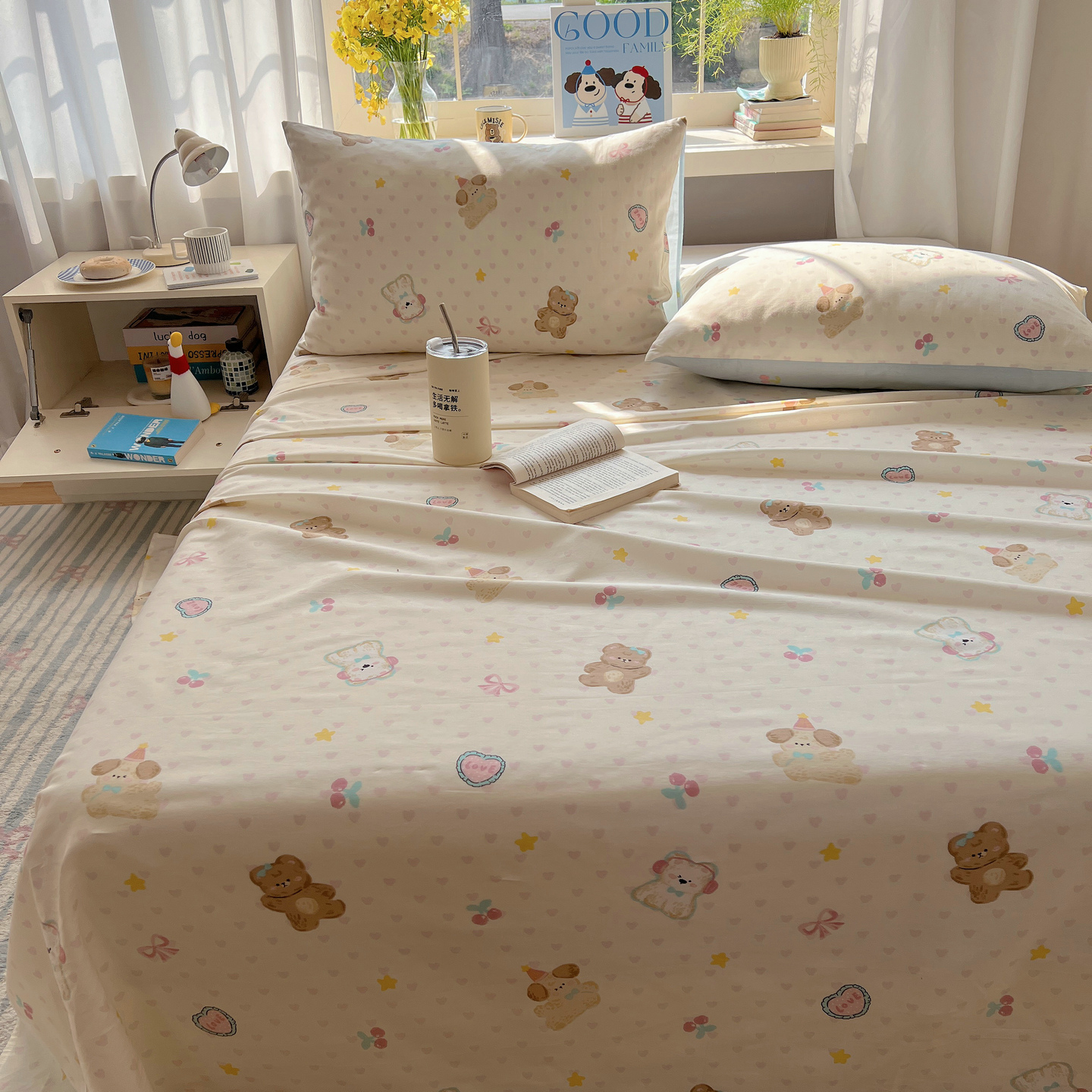 可爱小清新全棉卡通碎花床单单件 纯棉100单人宿舍被单春夏季床品