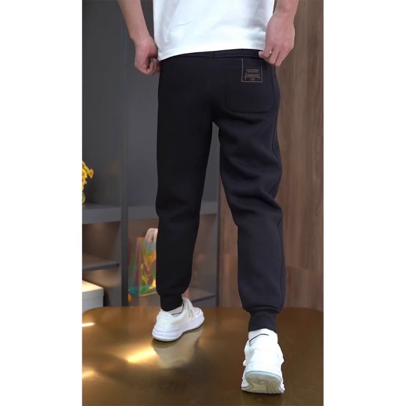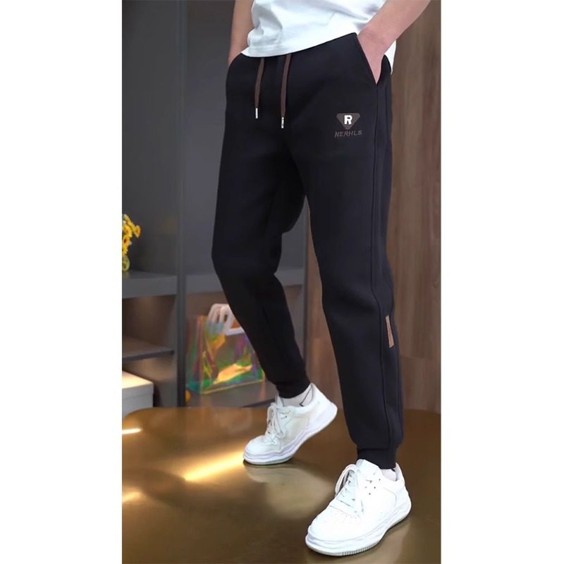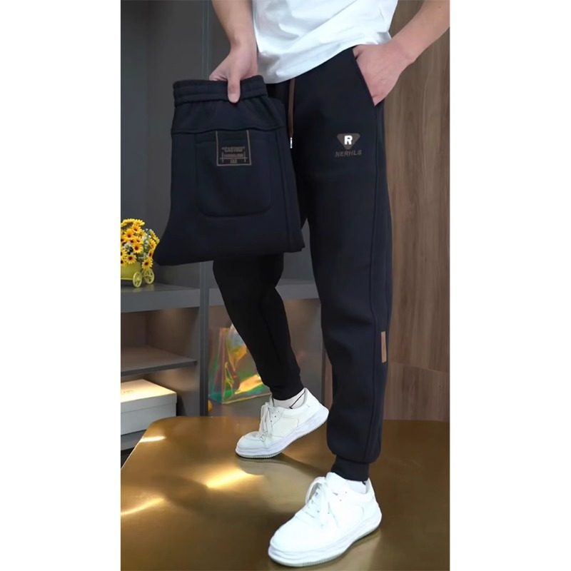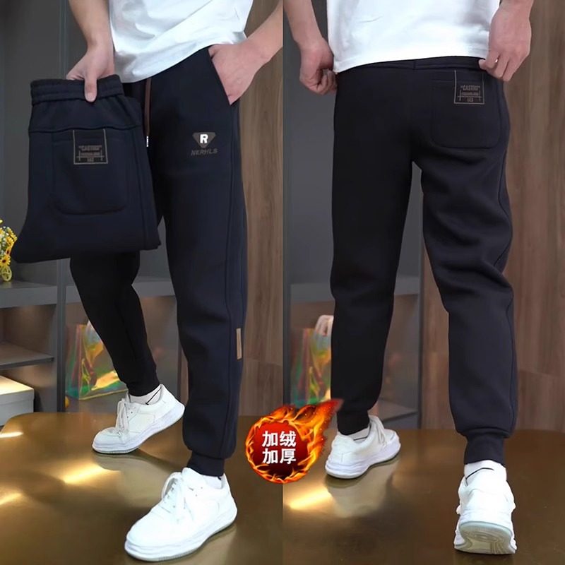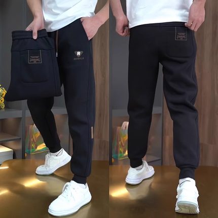 秋冬季新款黑色休闲裤子男士加绒加厚刺绣束脚运动卫裤修身哈伦裤