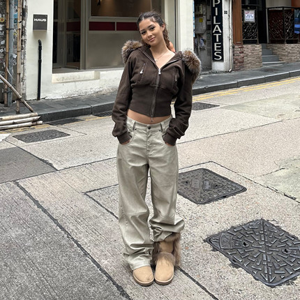 ICVIBE 缎感奶油·做旧奶白+斑驳擦色 超酷街头Baggy宽松滑板皮裤