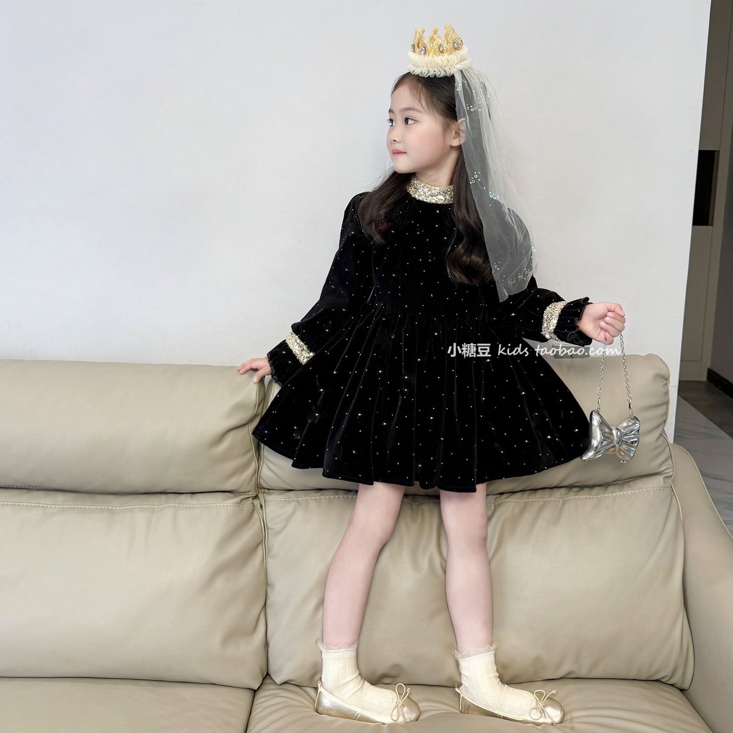 女童闪闪丝绒连衣裙2025秋季新款女孩亮片公主裙蓬蓬生日裙礼服裙