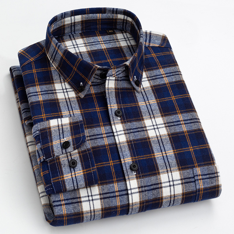 保罗秋冬季纯棉磨毛男士长袖衬衫