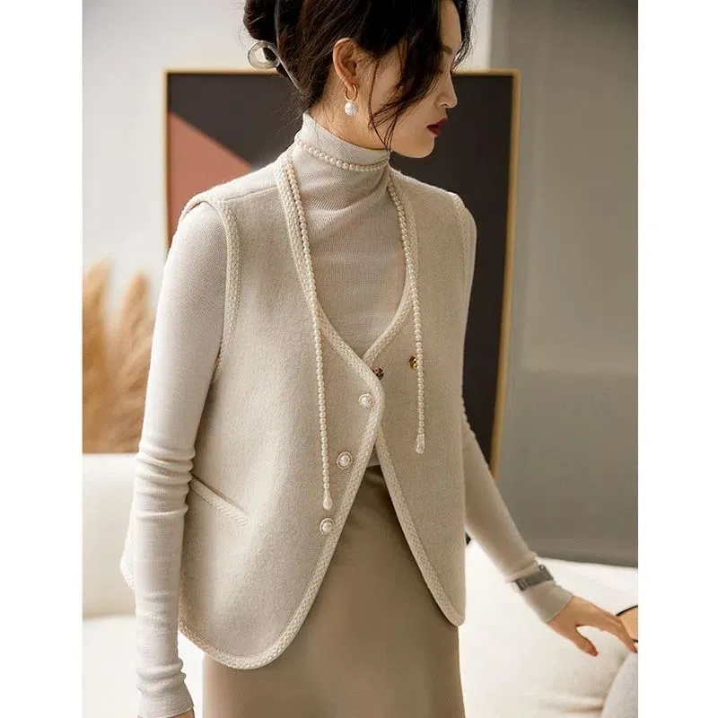 2024秋冬新款气质时尚小香风毛呢马甲女无袖坎肩外套百搭潮流上衣