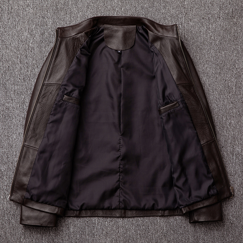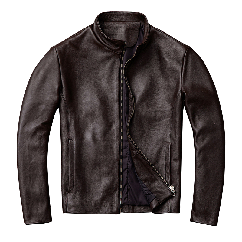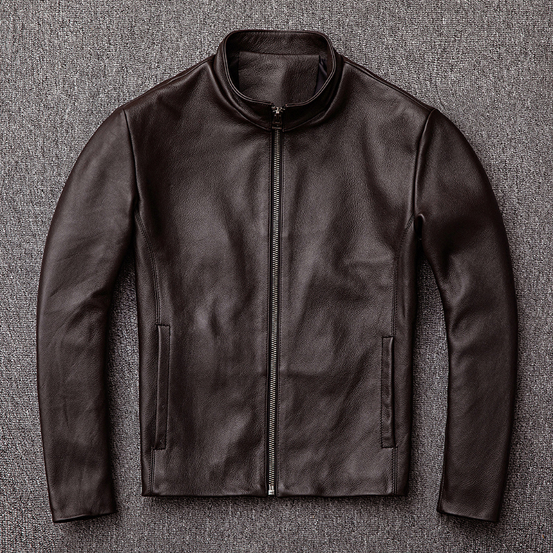 新款皮衣男真皮头层牛皮短款深棕纯皮夹克立领修身简约外套春秋