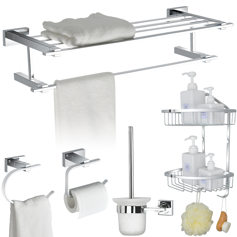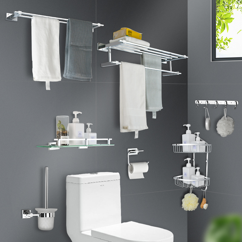304不锈钢浴室挂件卫浴五金套装壁挂式毛巾架免打孔W卫生间置物架
