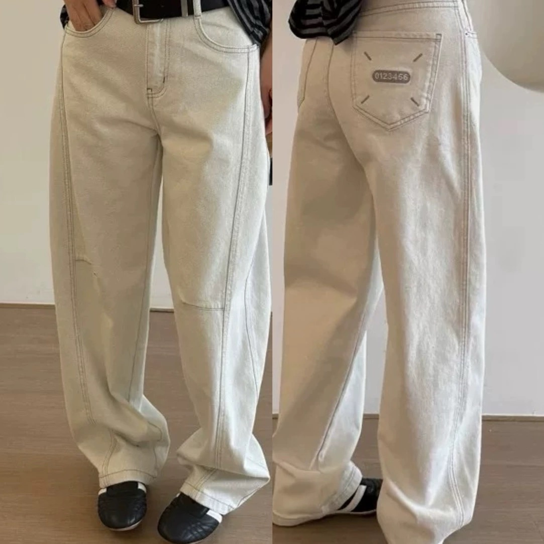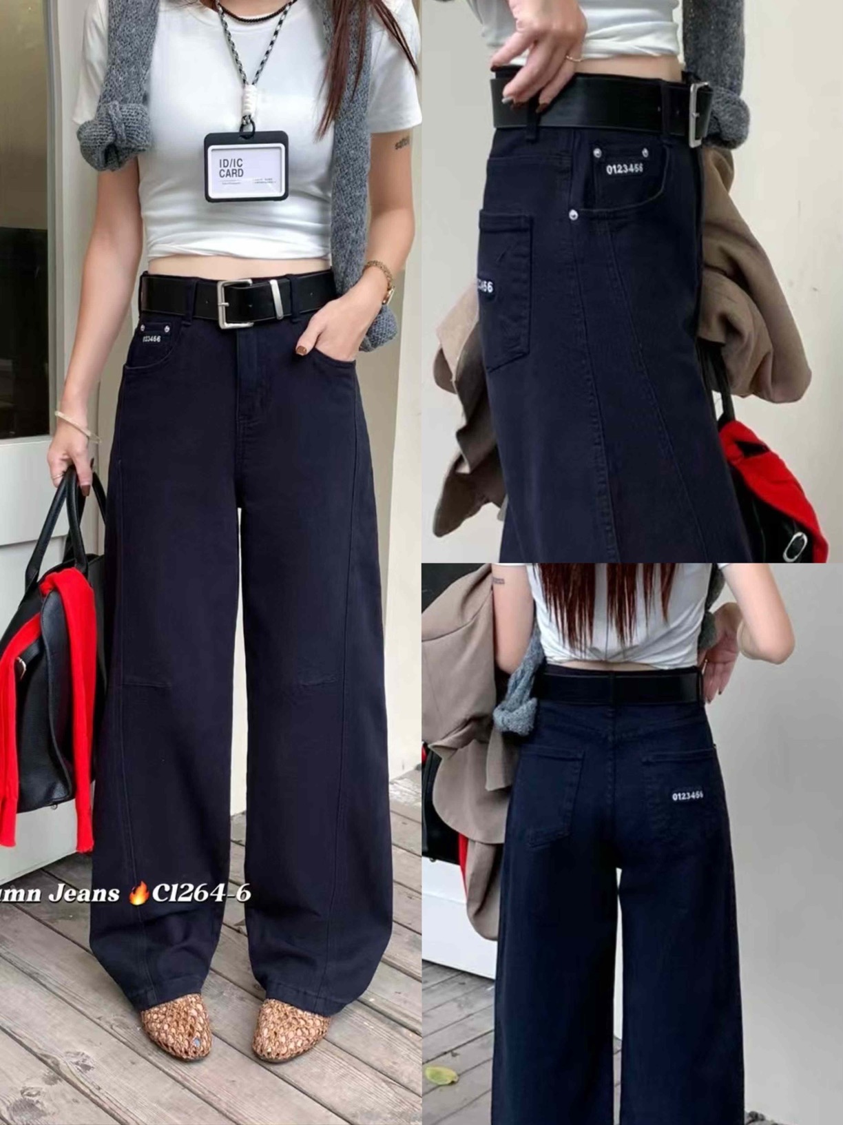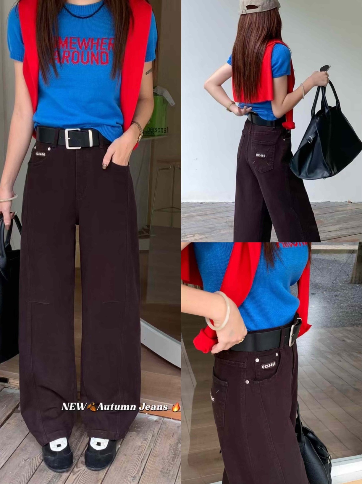 欧货2025秋季新款灰色弯刀裤女高腰宽松直筒弹力牛仔长裤时尚爆款