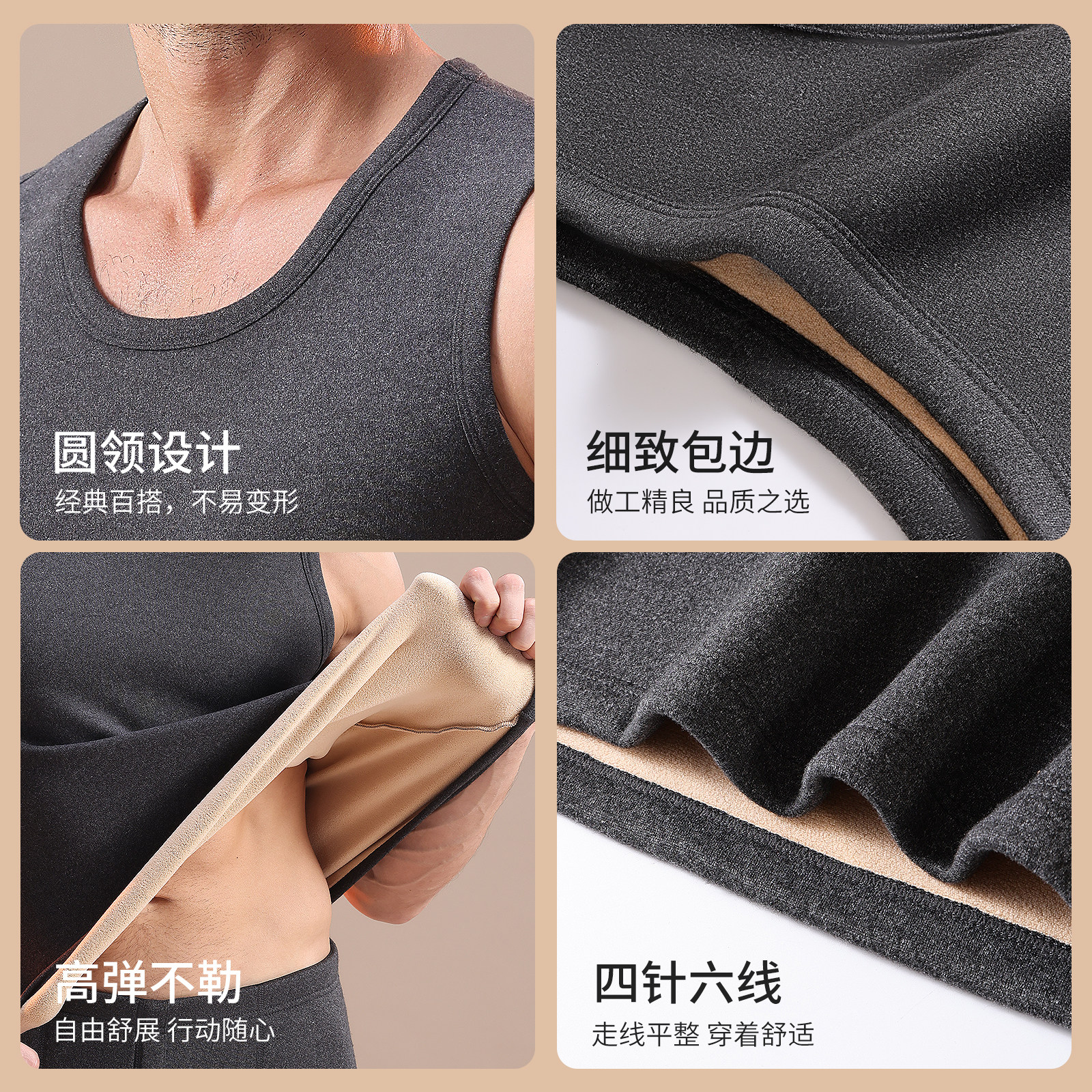 猫人男士保暖背心羽绒蚕丝羊羔绒打底内衣男生无袖加绒加厚秋冬季