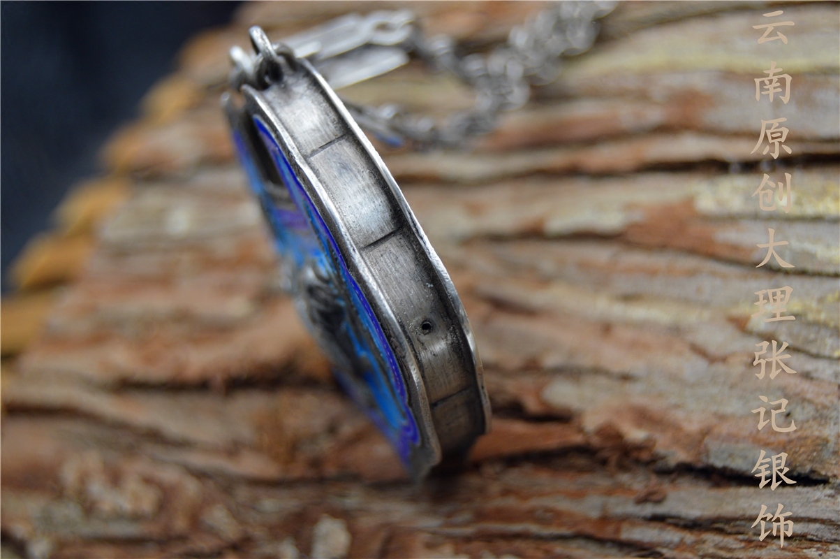 纯银手工麒麟烧蓝链子