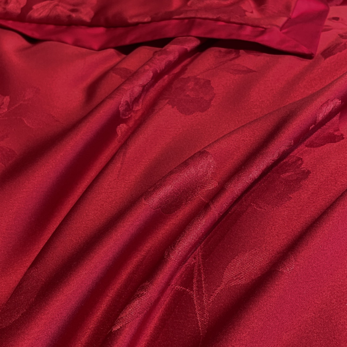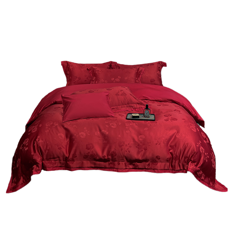 高级感纯棉提花婚庆四件套红色结婚全棉被套床单新婚喜被床上用品