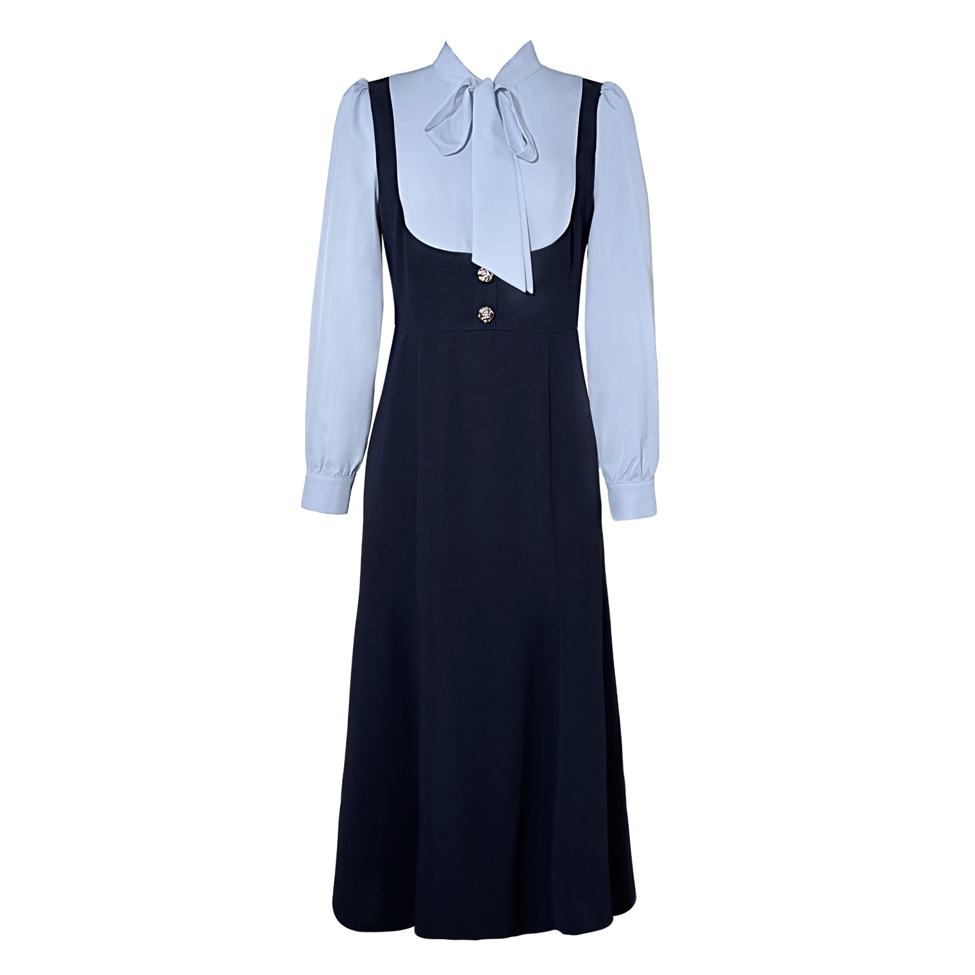 2025秋季新款假两件名媛风飘带设计感假两件鱼尾连衣裙女D3478