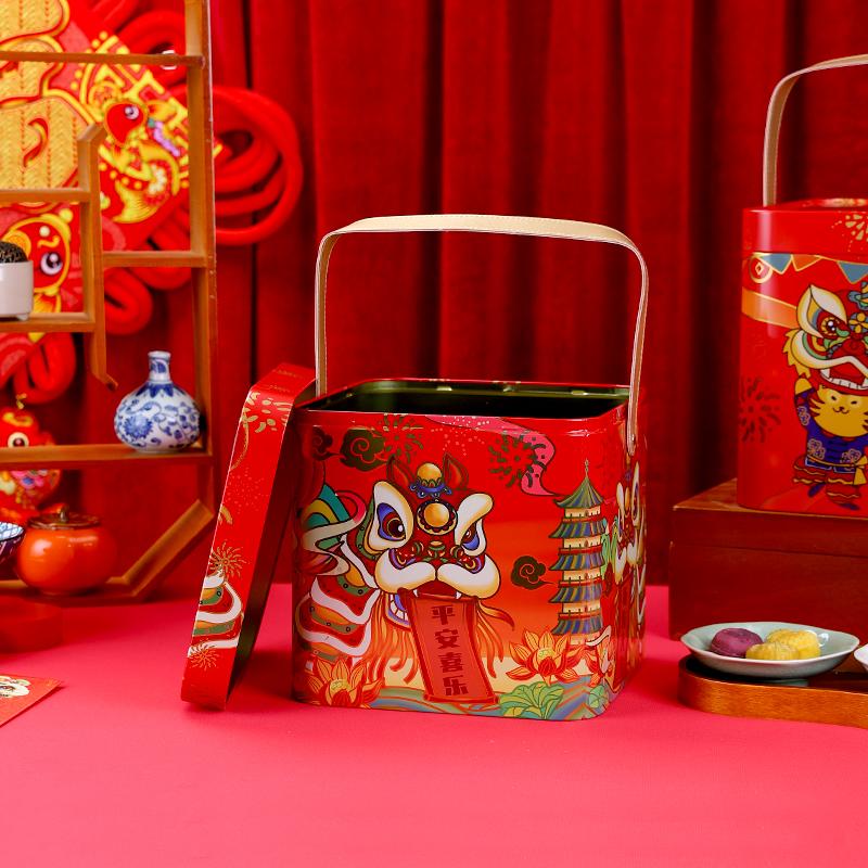 新年手提礼品包装铁盒高档干货零食包装盒空箱子曲奇饼干罐铁皮桶