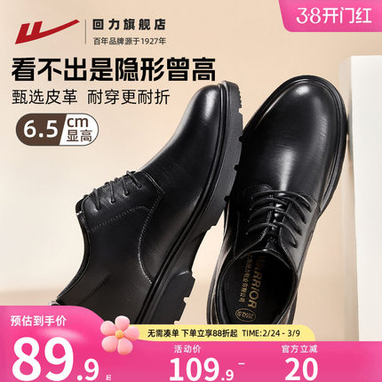 回力皮鞋男鞋内增高黑色鞋子厚底商务休闲男士增高皮鞋结婚新郎鞋