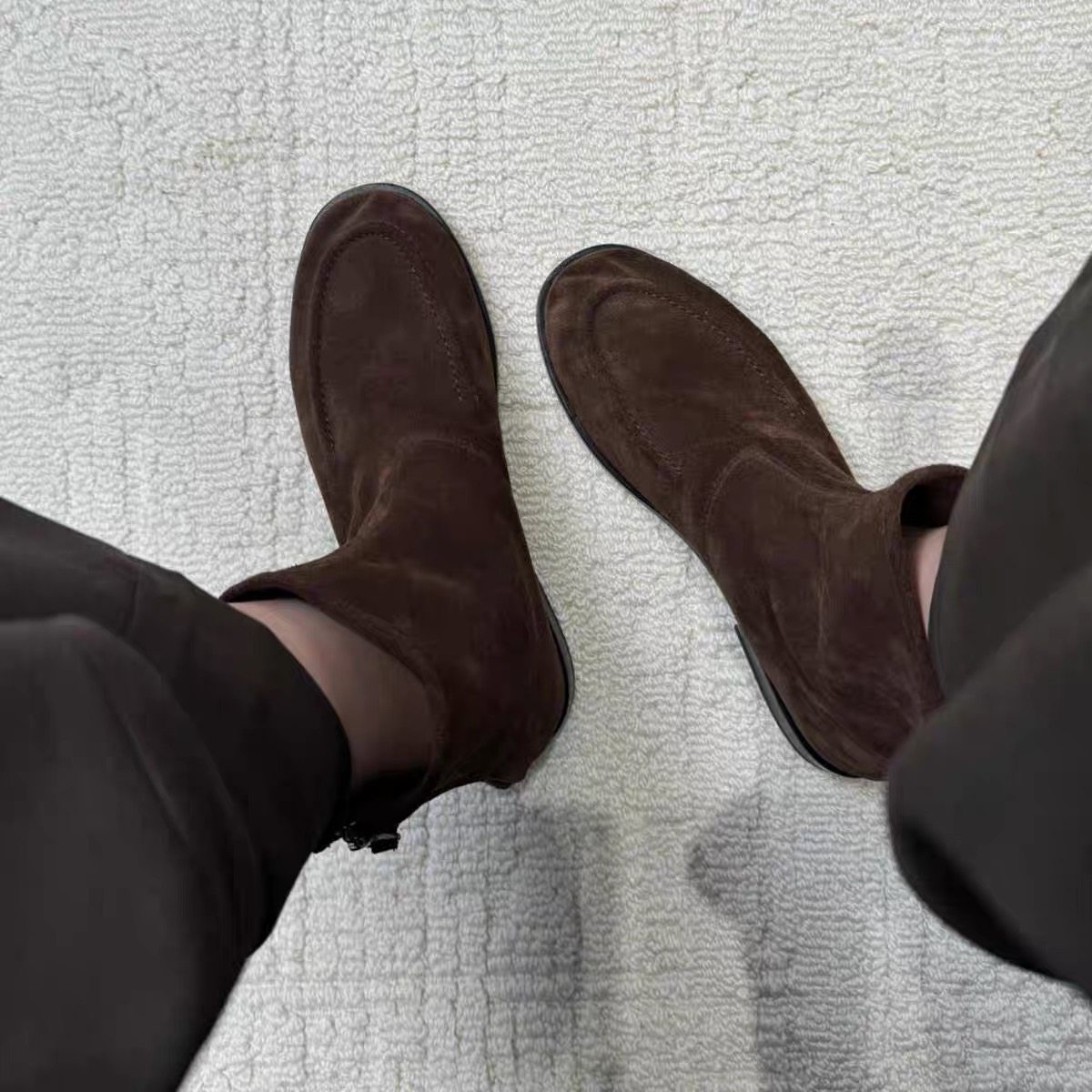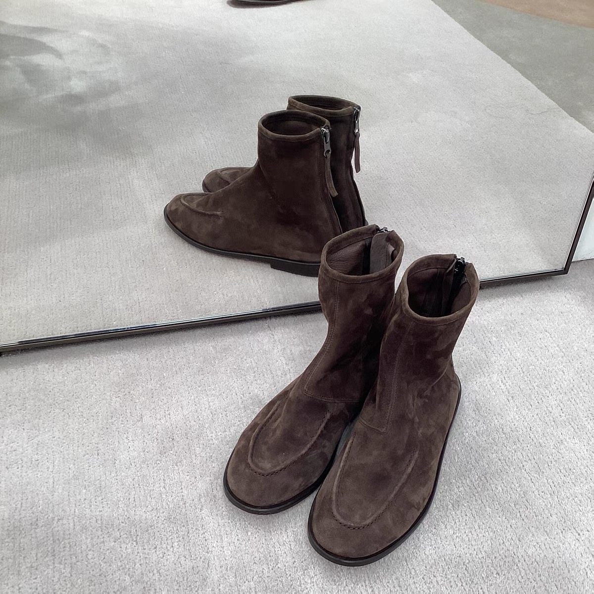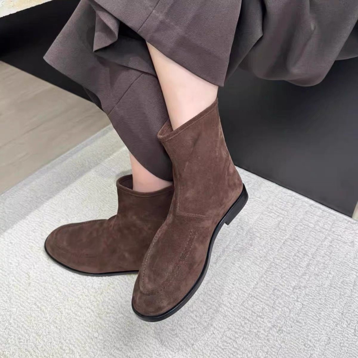 2025秋冬新款复古英伦风圆头平底后拉链短靴女真皮百搭瘦瘦靴踝靴
