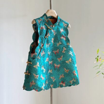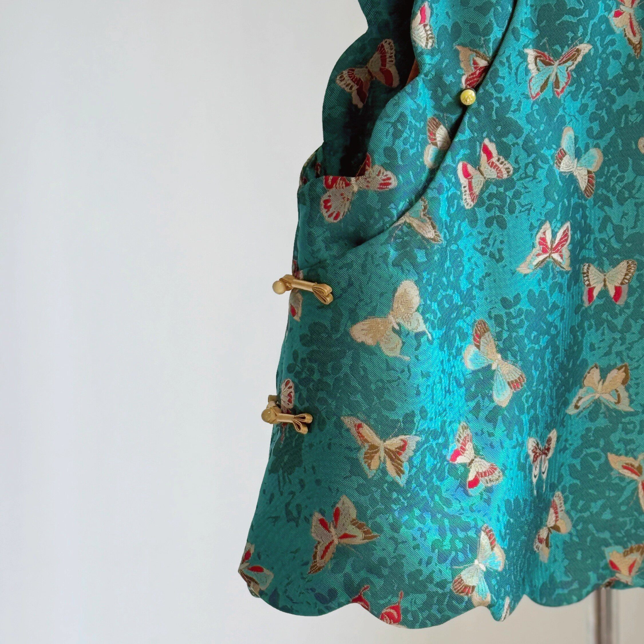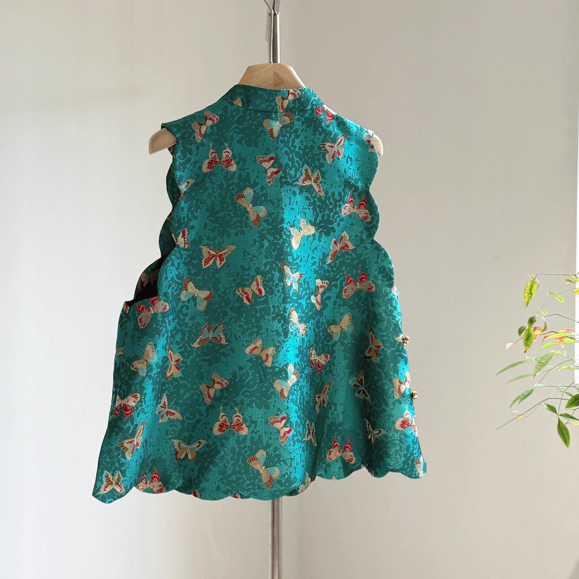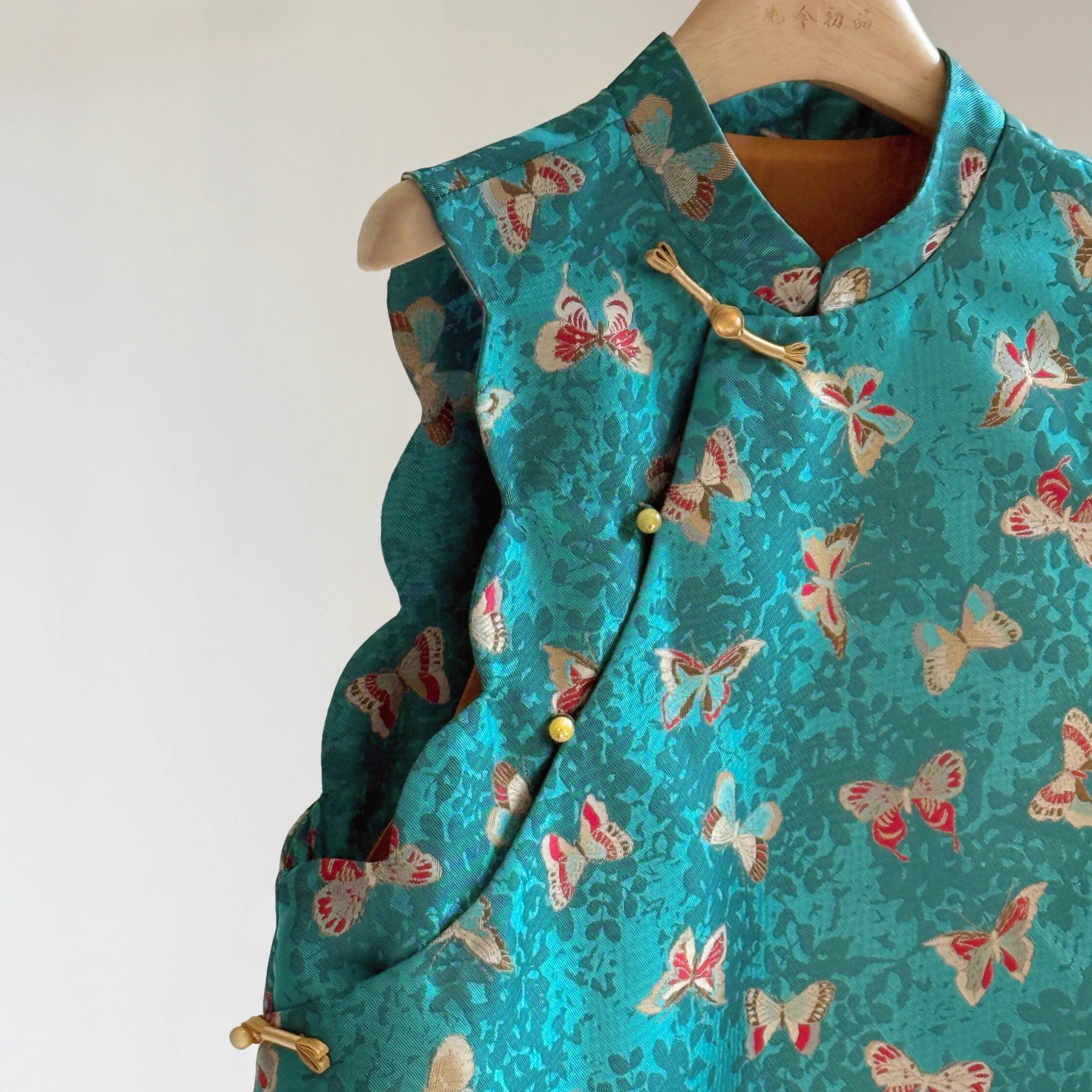 贵气改良斜襟盘扣蝴蝶提花马甲女