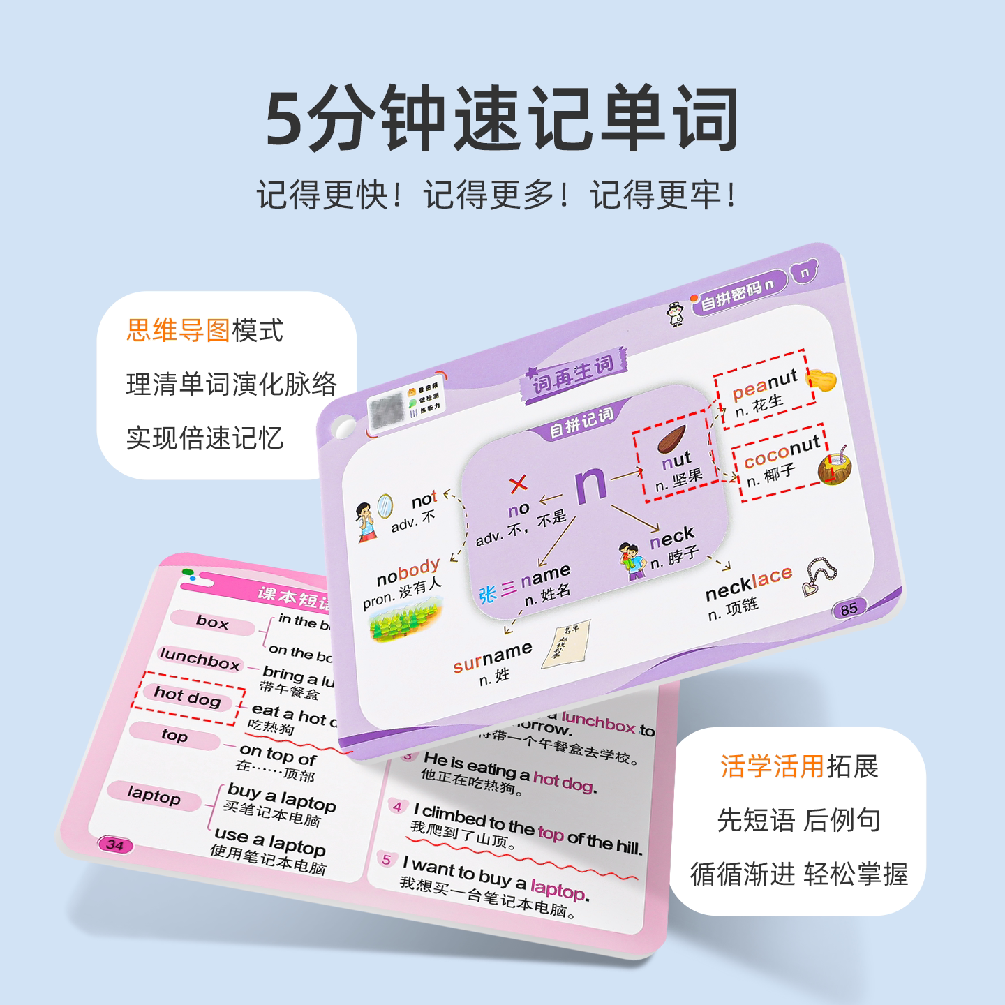小学英语单词卡片思维导图速记手卡词汇记背大全英文1020词认知卡