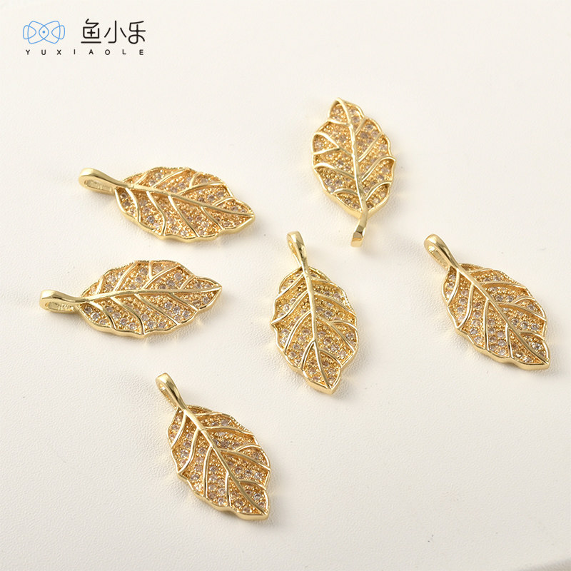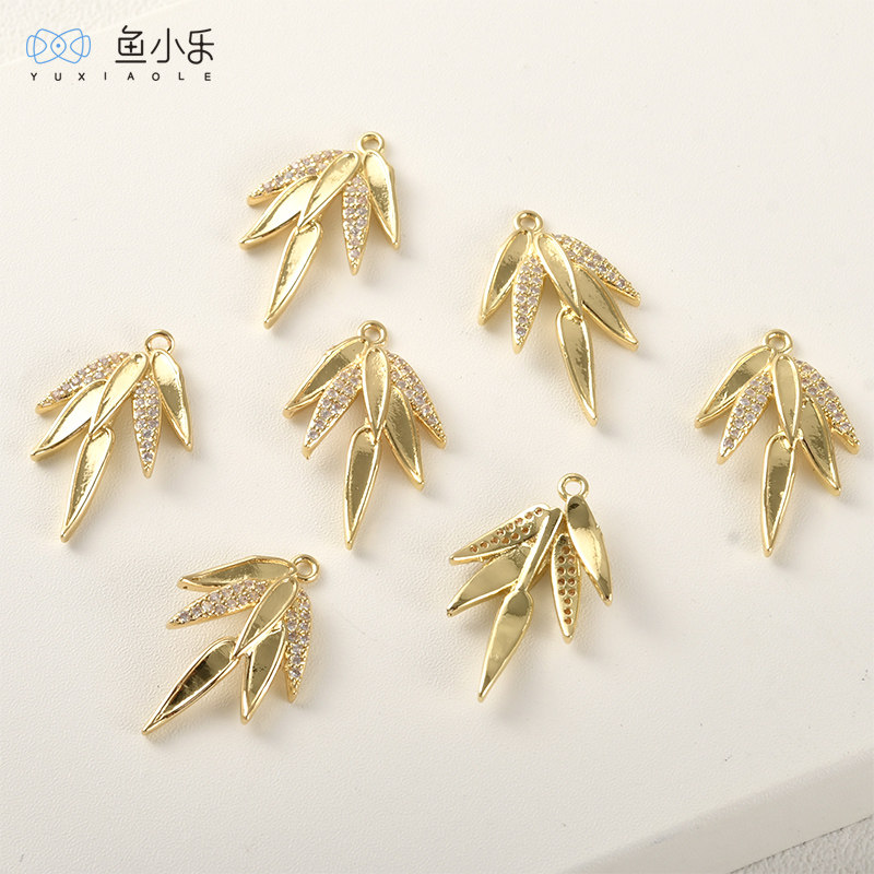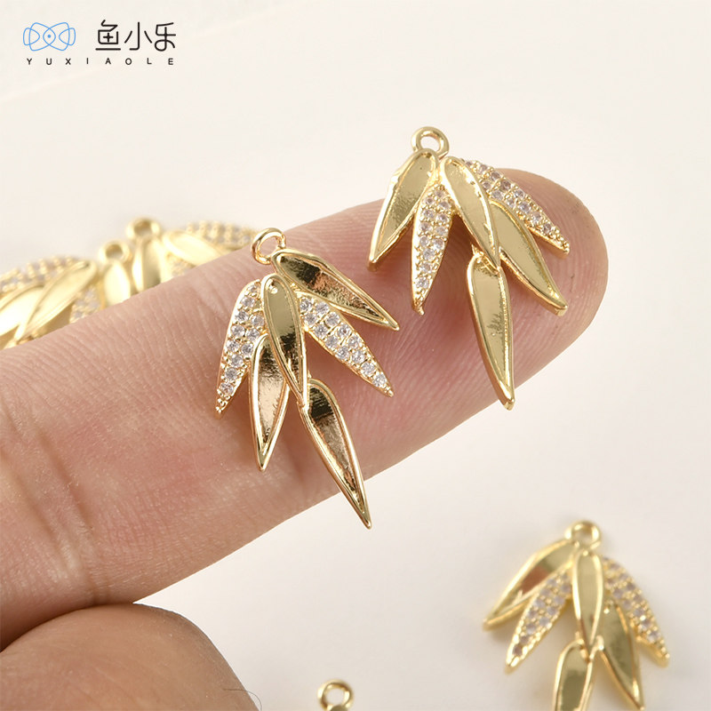 14k金保色清新竹叶子镶锆石树叶耳饰吊坠diy手作材料配件