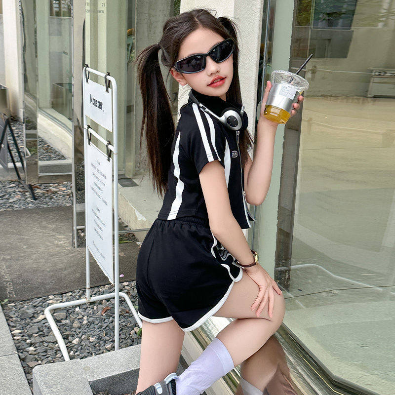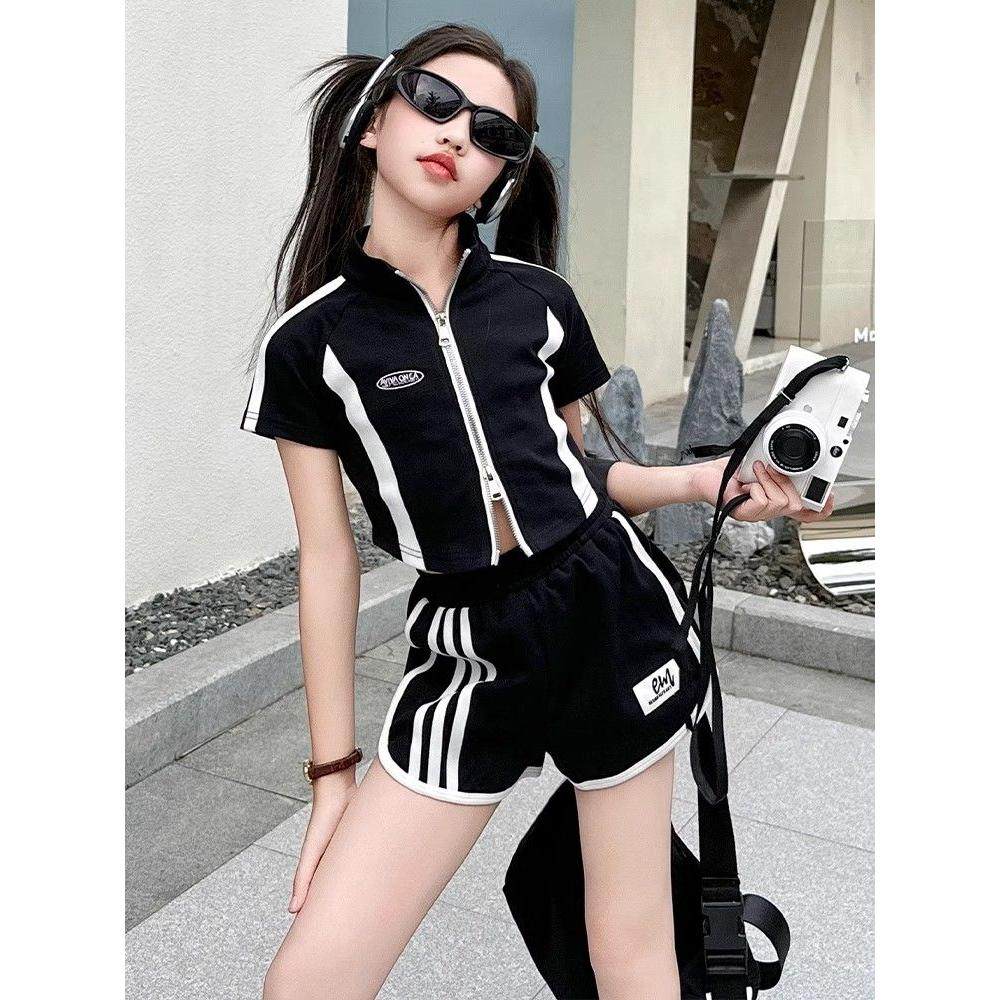 女童运动套装夏装百搭新款儿童洋气时髦瑜伽服大童夏季短裤两件套