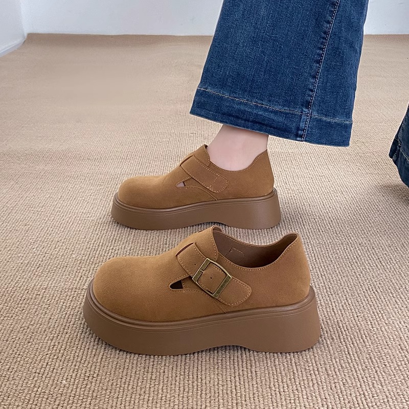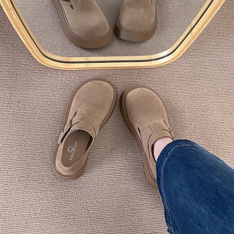 真皮勃肯鞋女外穿2025春秋新款韩版复古小皮鞋厚底防滑不累脚单鞋