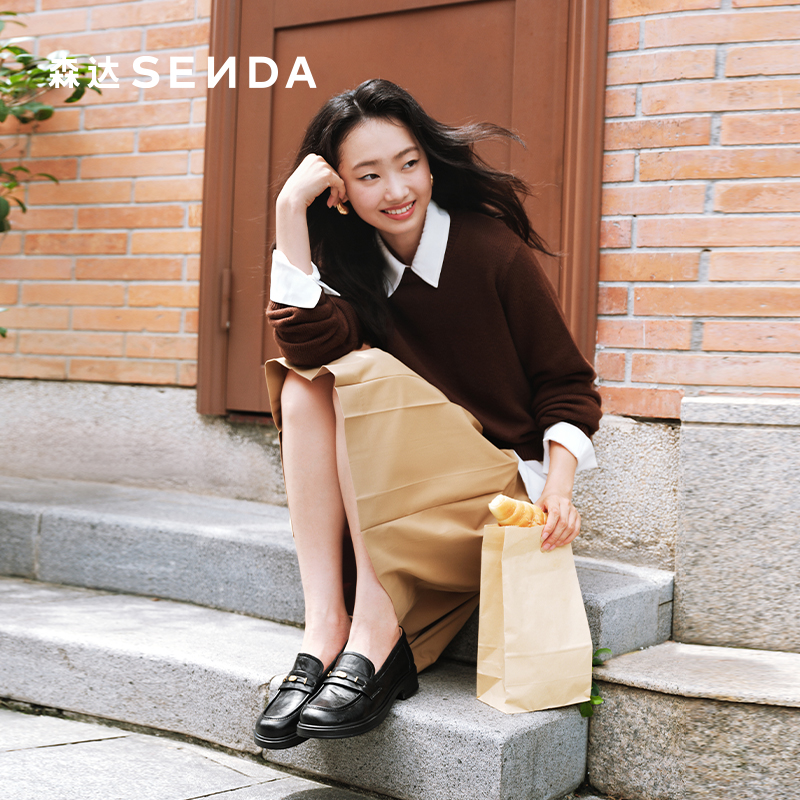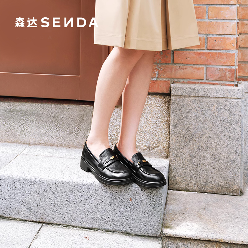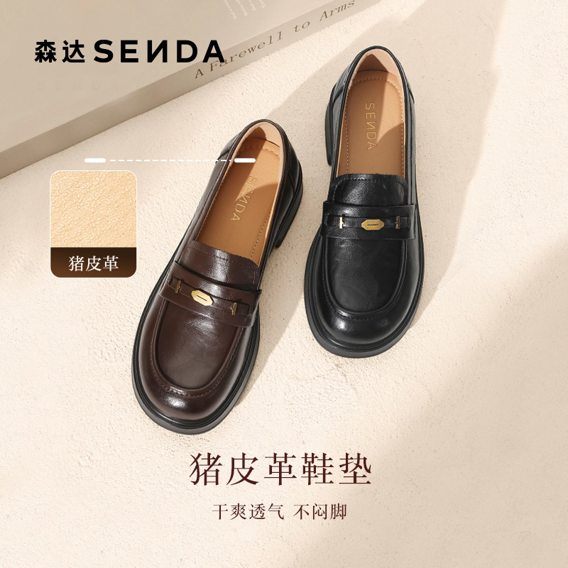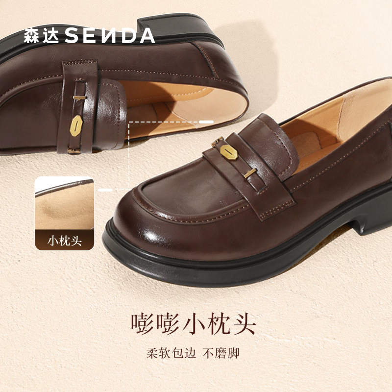 森达小皮鞋乐福鞋女鞋25秋新款商场同款英伦风通勤厚底单鞋XPW01