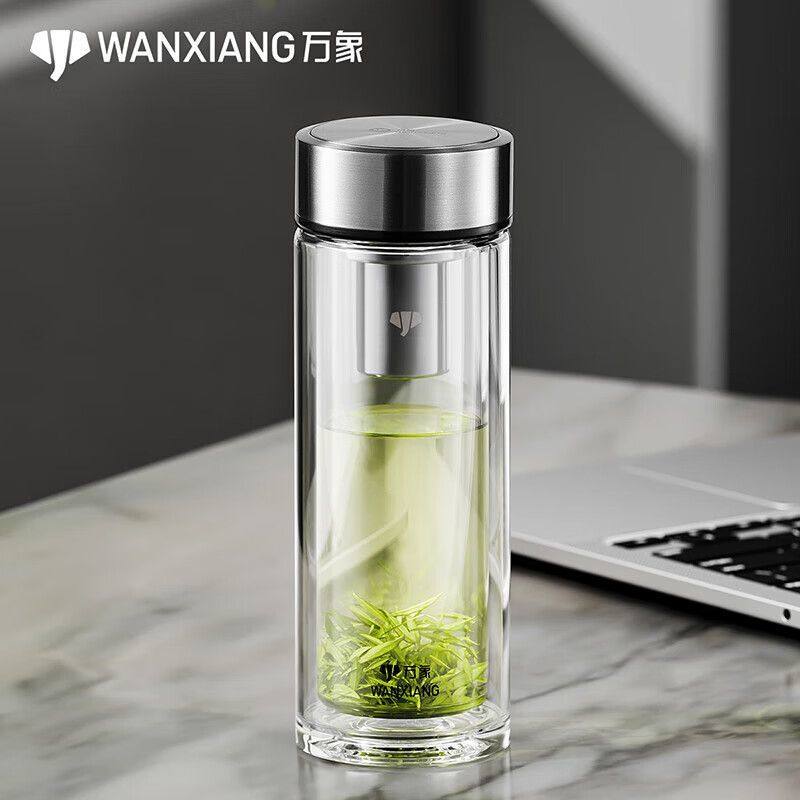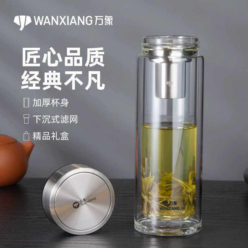 万象双层玻璃杯男士茶杯办公礼盒隔热水杯泡茶高档杯子V303R/V304