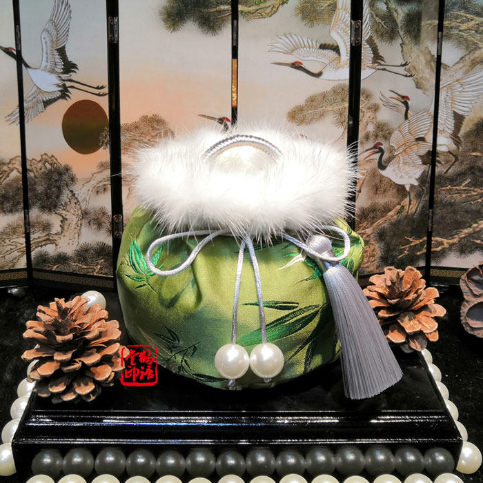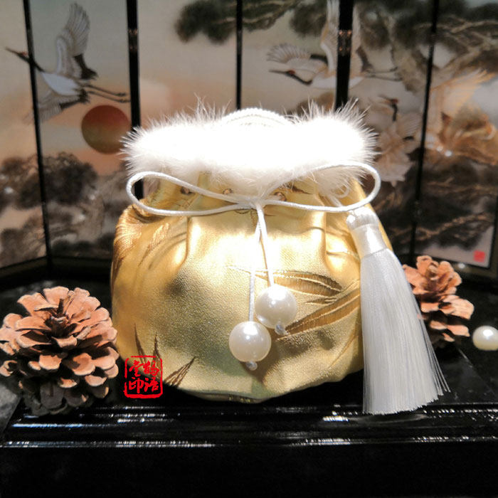 宫廷古风汤婆子布套 貂毛锦缎布绒 手炉套有凤来栖新品包邮