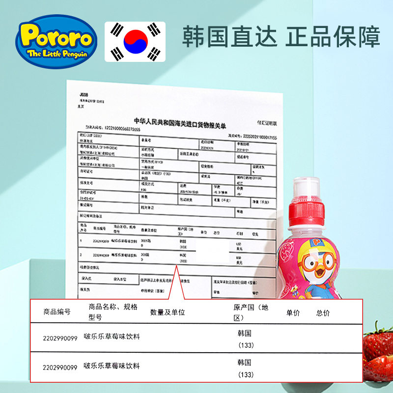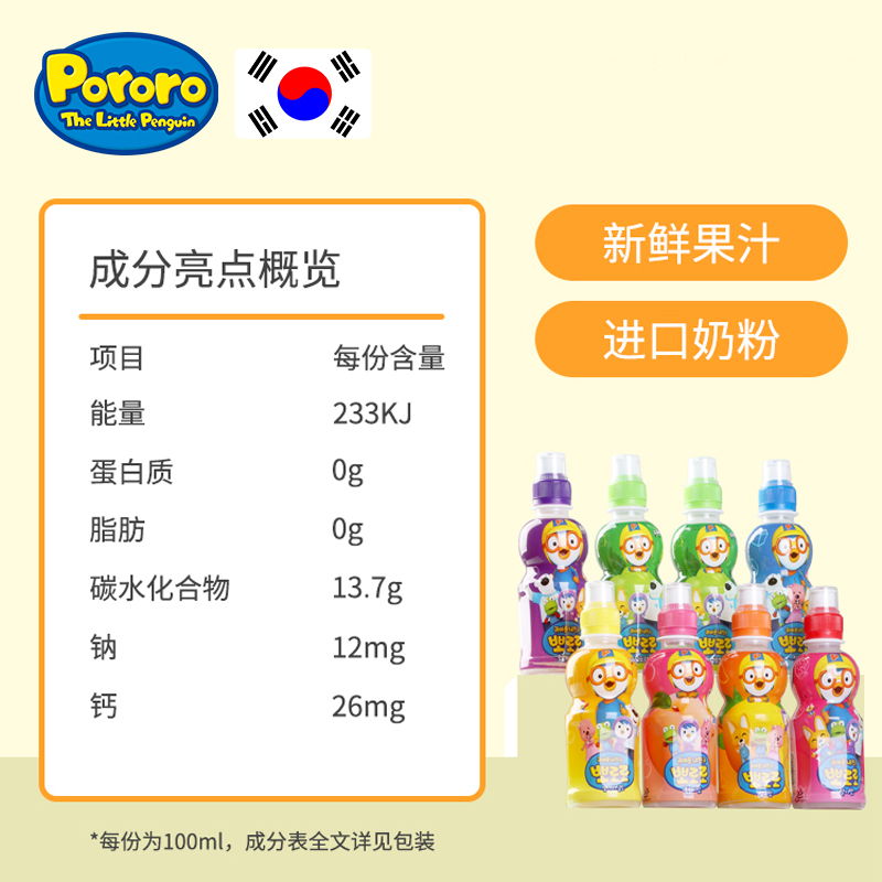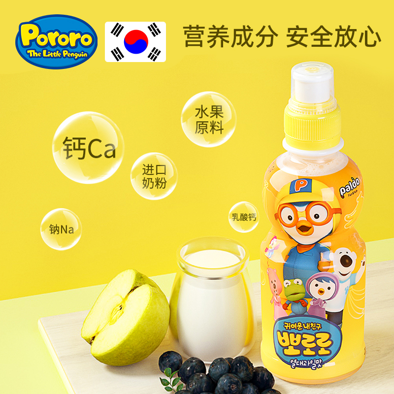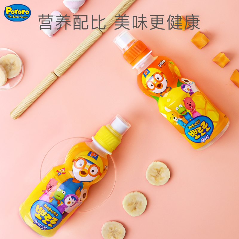 韩国进口啵乐乐pororo儿童饮料水果口味牛奶草莓整箱24瓶8瓶饮品